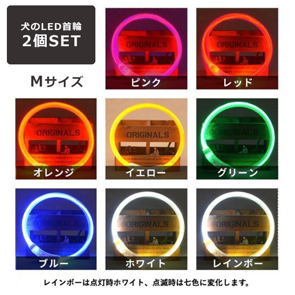 犬のLED首輪 Mサイズ 2個セット首輪 犬 光る 猫 LEDライト 犬の首輪 USB充電式 ペット 小型犬 中型犬 大型犬 35cm 50cm 70cm LED ライト ペット用品 ドッググッズ 安全 散歩