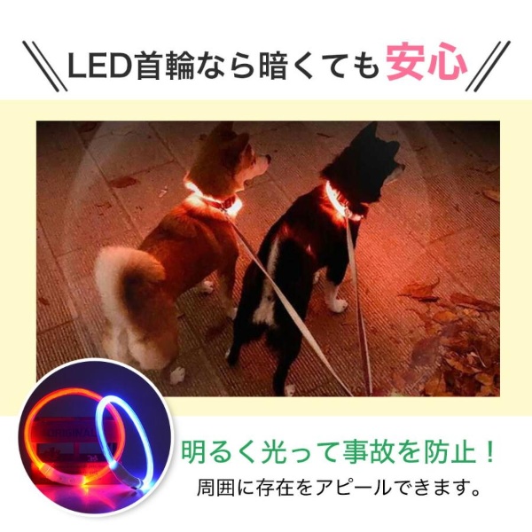 暗い夜道も安心♪LEDライトでペットの存在を周りに知らせることでき、事故を防止する事が出来ます。