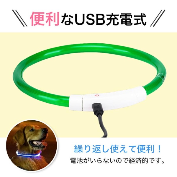 犬のLED首輪 Lサイズ 2個セット首輪 犬 光る 猫 LEDライト 犬の首輪 USB充電式 ペット 小型犬 中型犬 大型犬 35cm 50cm 70cm LED ライト ペット用品 ドッググッズ 安全 散歩