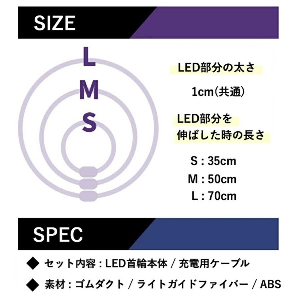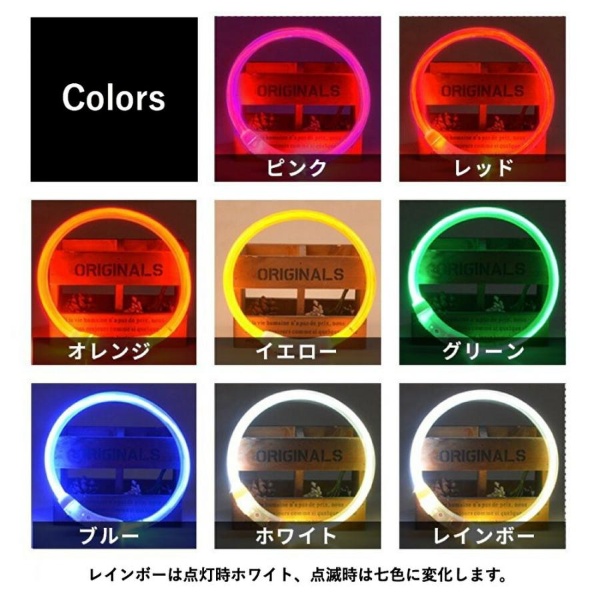 | 商品説明 | 【2個SET販売ページとなります】 暗い夜道も安心♪LEDライトでペットの存在を周りに知らせることでき、事故を防止する事が出来ます。 ペットが迷子になっても明るく光るので見つけやすくて安心。 ペットの首回りに合わせてチューブをカットでき、調節可能なのでペットにぴったりな首輪になります。 USB充電式なので電池を買い替える必要もなく使いやすくてとっても便利です。 暗い夜道でのお散歩の必需品♪ 【商品仕様】 サイズ:S(35cm) 、M(50cm)、L(70cm) カラー:ブルー、ホワイト、ピンク、レッド、イエロー、オレンジ、グリーン、レインボー 【注意事項】 ※本商品には説明書が付属しておりません。使用方法に関しては商品ページをご参照ください。 ※商品画像はご覧になっているモニターやPCなどの環境、解像度により、実物と多少カラーが異なる場合がございます。色味やサイズが異なるなどのクレームはご対応致しかねますので、予めご了承ください。 ※輸送中に外装に傷やへこみが起こる場合がございますが、商品に影響はございませんので、予めご了承のもとお買い求めください。 ※本商品は海外からの輸入品ですので、細かい傷や汚れなどある場合がございます。予めご了承のもとお買い求めください。 ※こちらの商品は安価にご提供するため、簡易包装、簡易パッケージとなっております。 ※本商品は犬の首輪として使用するものであり、本来の目的と違う使い方をしますと事故、故障、破損の恐れがございますので、本来の目的以外での使用はしないでください。 ※お子様の使用は事故、怪我の原因となりますので、手の届かない場所にて保管頂き、ご使用はお控えください。 ※本商品を使用した事による、直接もしくは間接的に生じた損害、事故、怪我について当店は一切の責任を負いません。 ※出荷時期により、首輪の長さが約1〜3cmほど誤差がでる場合がございます。予めご了承ください。 ※出荷時期によりケーブル差込口のラバーがないタイプがございます。予めご了承ください。 ※本商品の給電はUSBタイプになります。事前に使用できることをご確認いただき、お買い求めください。 ※本商品は小さな部品を使用しております。誤飲等の危険性があるため、お子様、ペットがご利用になる場合は大人の方と一緒にご使用頂き、お子様の手の届かない場所、ペットが触らない場所で保管してください。 ※本商品を使用し、首回りがきつい場合や、ゆるすぎて首から外れてしまう場合は、事故、怪我の原因となりますので、使用を中止してください。 |