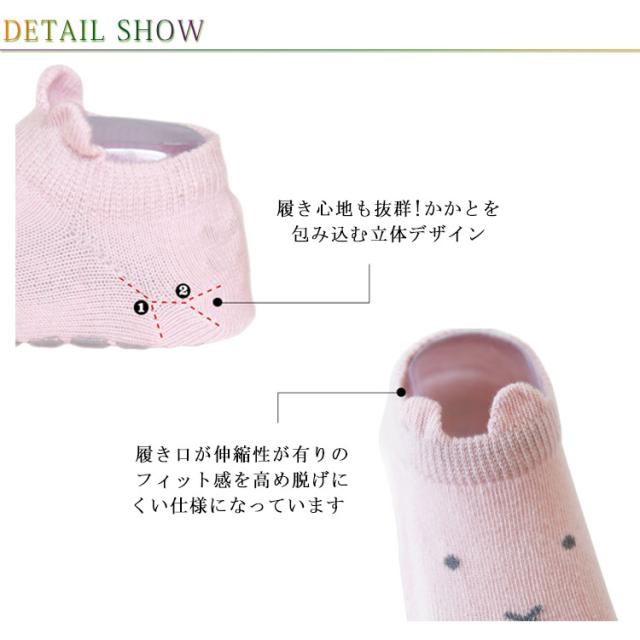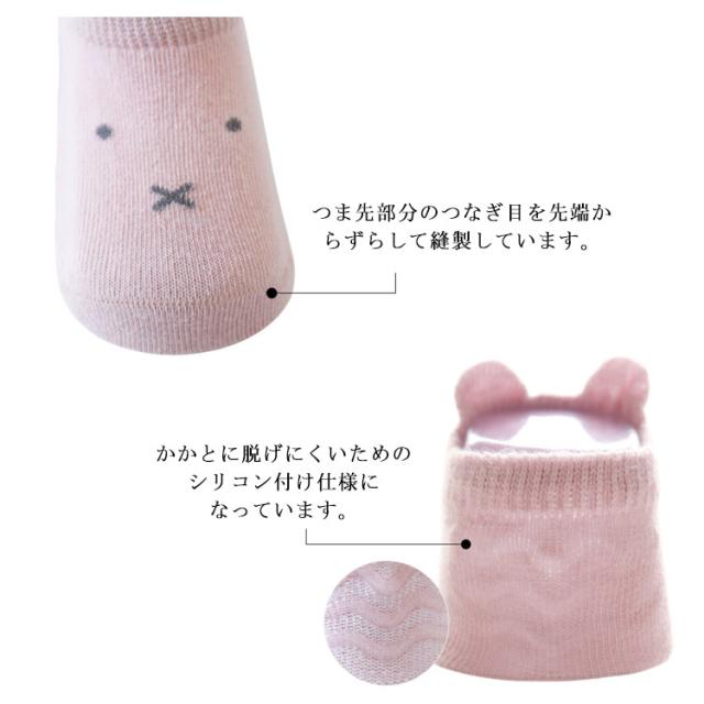 | 3足セット!足元もキュートに演出♪滑り止め付きアニマルベビーソックス お子さんも大好きな可愛い動物の顔が足元をお酒落に可愛くみせてくれます。 履き口が伸縮性が有りのフィット感を高め脱げにくい仕様になっています 可愛い耳付き伸縮性もありズレにくく履きやすいデザイン。 履き心地も抜群!かかとを包み込む立体デザイン かかとに脱げにくいためのシリコン付け仕様になっています。 つま先部分のつなぎ目を先端からずらして縫製しています。 足裏にシリコン製の滑り止めを付けています。 赤ちゃんの足を優しく包み込みコットンを素材に使用し、保温性?通気性優れています。 | |