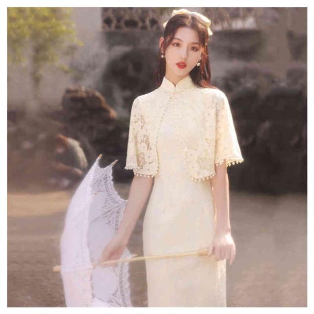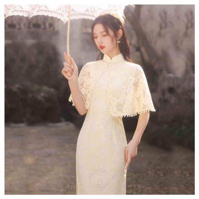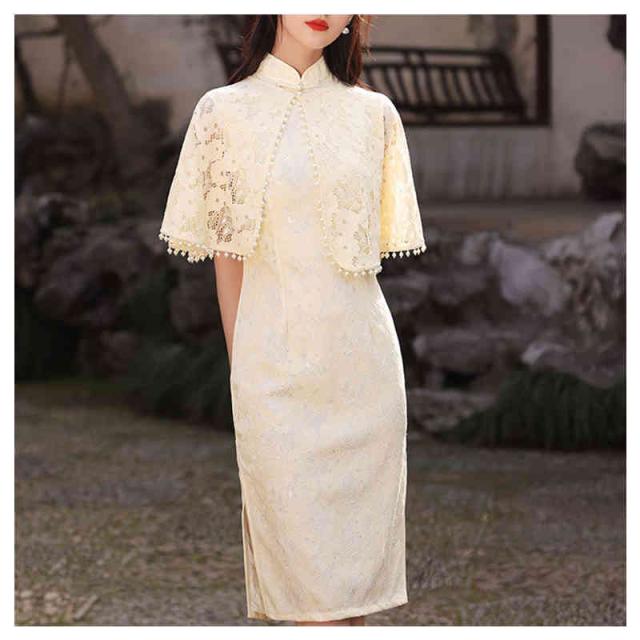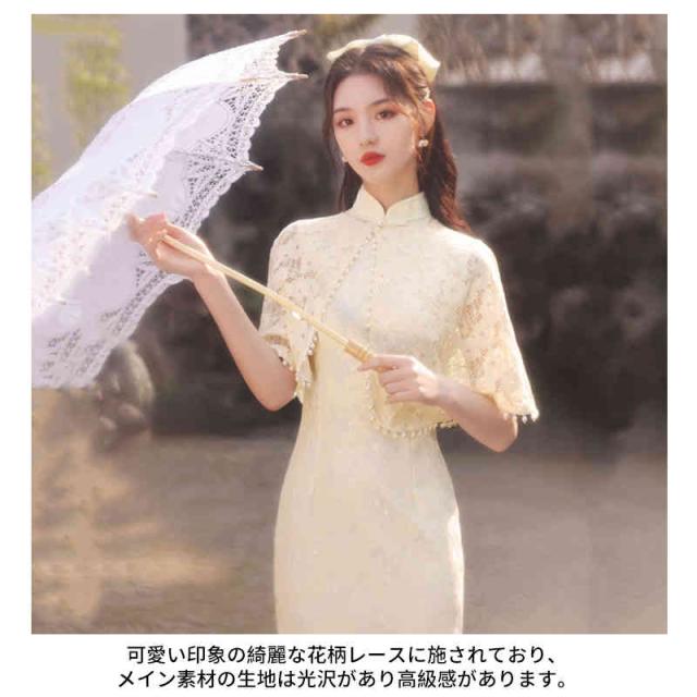 2点セット チャイナ ワンピース チャイナドレス ロング ストール マント カジュアル レースセクシーチャイナ服 刺繍 コスプレ セクシー 大きいサイズ 半袖 チャイナ服 ロリ 高級 セクシーチャイナ パーティー 演奏会 発表会 結婚式 マキシ丈 中華服 仙女 民族風