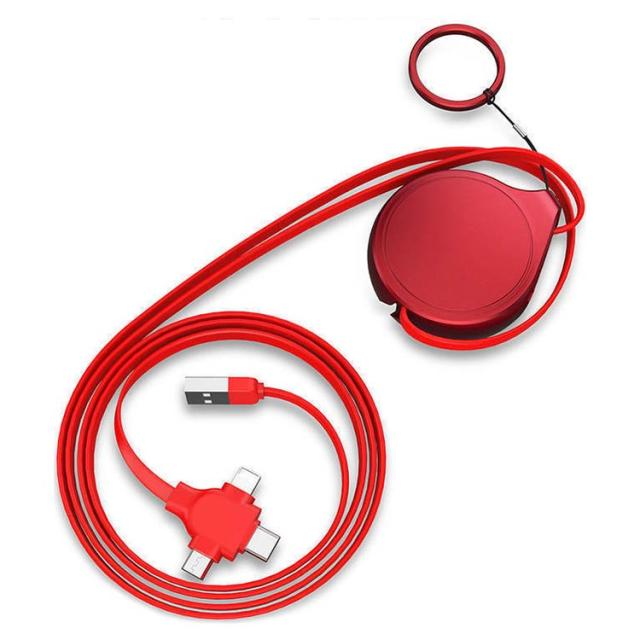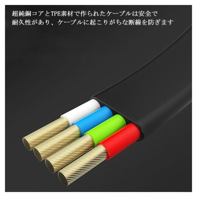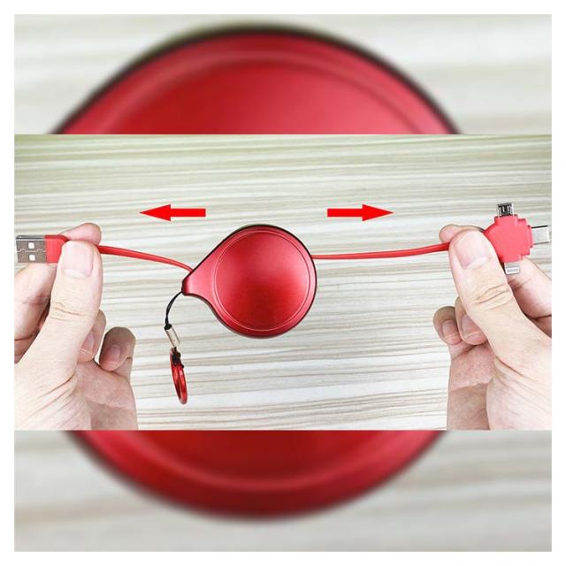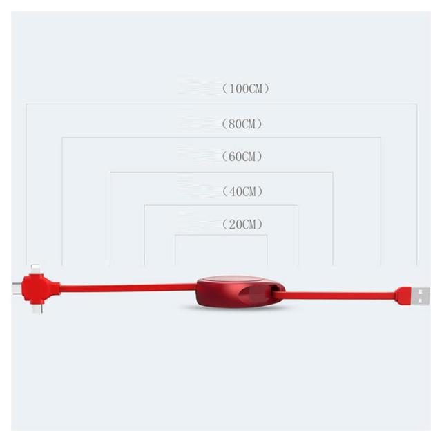 | 一本のUSBケーブルで、3台(MicroUSB、Lightning、Type-c)を充電することが可能な3in1巻き取り式充電ケーブルです。 3台同時充電も可能です。 超純銅コアとTPE素材で作られたケーブルは安全で耐久性があり、ケーブルに起こりがちな断線を防ぎます。 | |