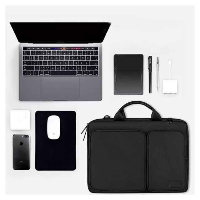 | ■肩掛けもできます ショルダーバッグとして肩かけできるPCバック。 柔らかい肩パッド付きで肩への負担を軽減します。 ■強くて丈夫な防震・防圧クッション 振動や圧力からノートタブレットなどを守る分厚いクッションで大事な機器をしっかりガード! キズに強い丈夫な布地を使用したPCケースです。 ■防水仕様 防水加工が施されたPCバッグは雨や日や多少の水がかかっても中に沁み込まないので安心です。 ※完全防水カバンではありません。 ■整理整頓もできる大容量バック パソコンバックには、内側にも外側にもポケットがたくさんあるので、書類やマウス、ケーブルなどのPC小物もきれいに整理して収納できます。 | |