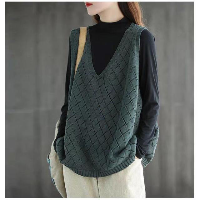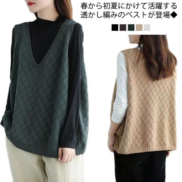 ニット ベスト レディース サマー ベスト 透かし編み ニットベスト Vネック ノースリーブ プルオーバー ニット トップス 薄手 夏ベスト 透け感 春ベスト レイヤード 重ね着 おしゃれ ゆったり 体型カバー シンプル 無地 大人 カジュアル 通勤 OL 通学 春 夏 秋 送料無料
