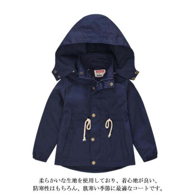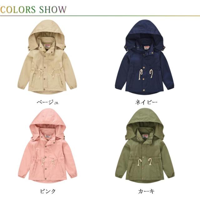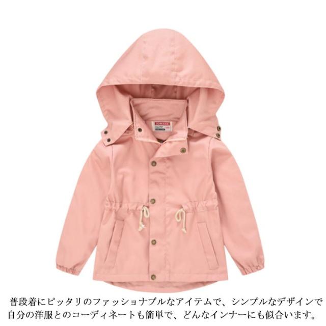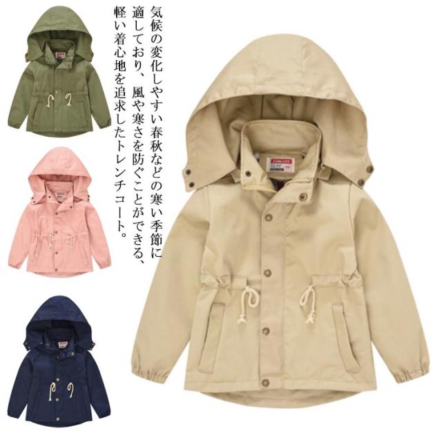 キッズトレンチコート マウンテンパーカー 子供コート 春秋ジャケット 韓国子供服 通学 キッズ ジュニア カジュアル 女の子 男の子 フード付き 防寒 防風 カーキ ネービー ピンク ベージュ 100 110 120 130 140 送料無料