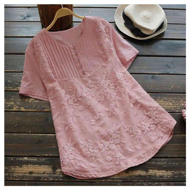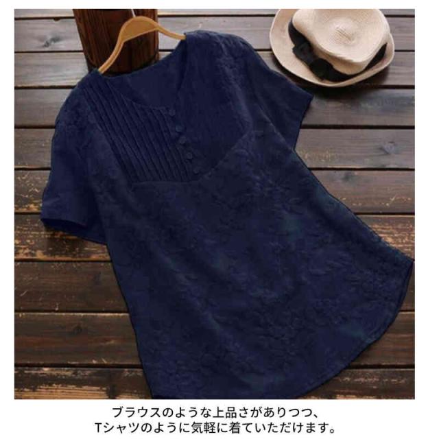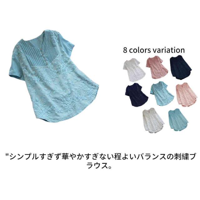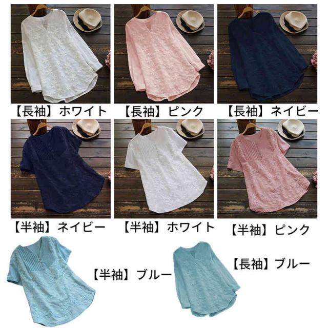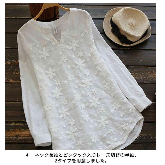 ブラウス レースブラウス レースシャツ レディース 刺繍ブラウス 花柄 半袖 長袖 切り替え トップス キーネック 無地 春夏 薄手 カジュアル プルオーバー 2タイプ 刺繍トップス 森ガール