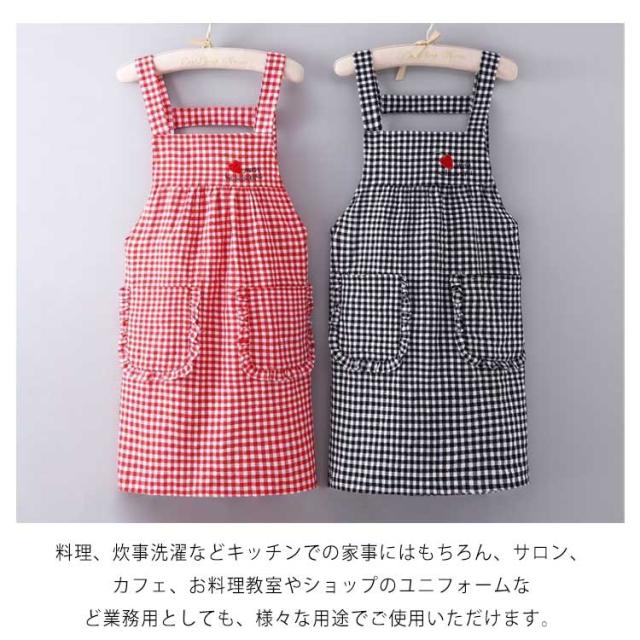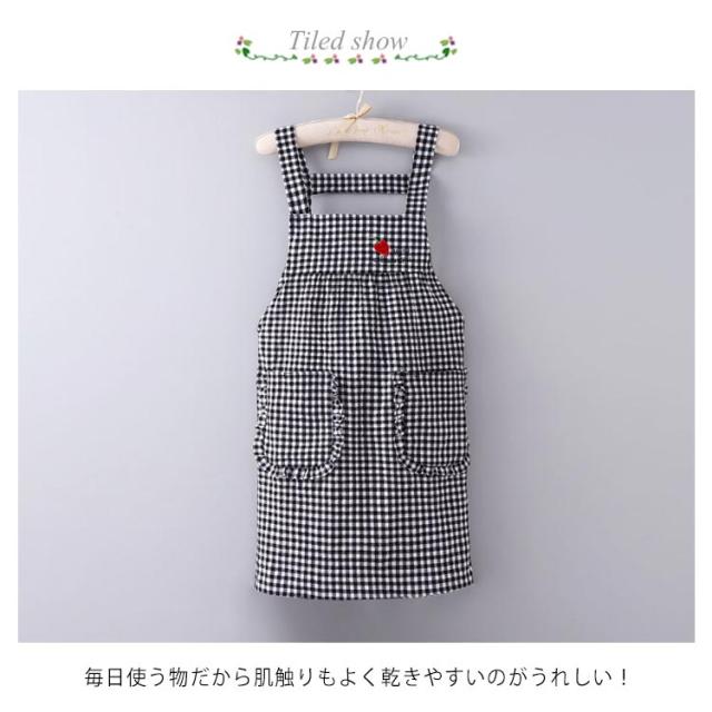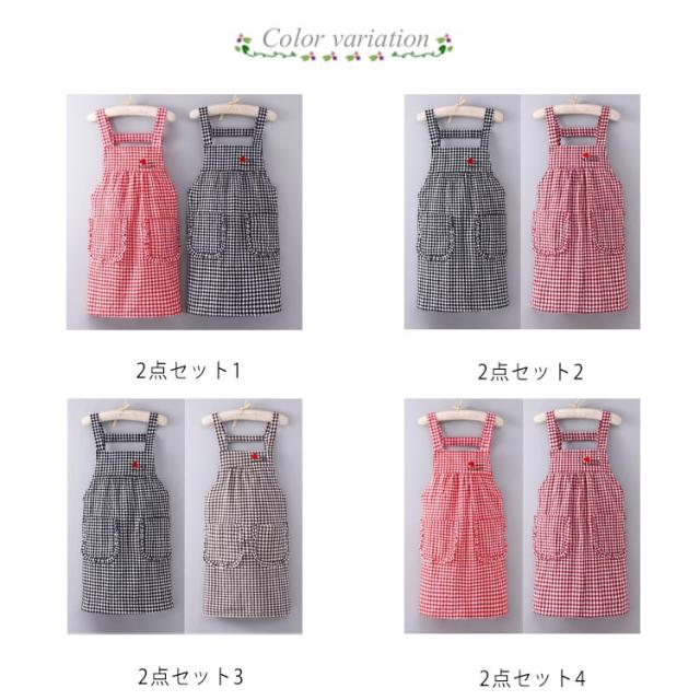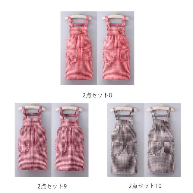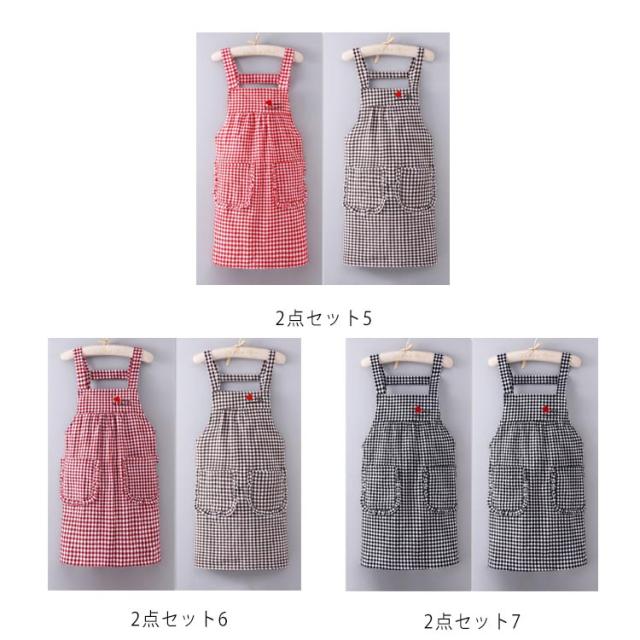 お得な2点セット!チェック柄 エプロン ワーク チェックエプロン H型 ショート丈 保育士 おしゃれ ポケット付き レディース カフェエプロン ノースリーブ 家事 料理 掃除 誕生日 花屋 男女兼用 黒 母の日 父の日 送料無料