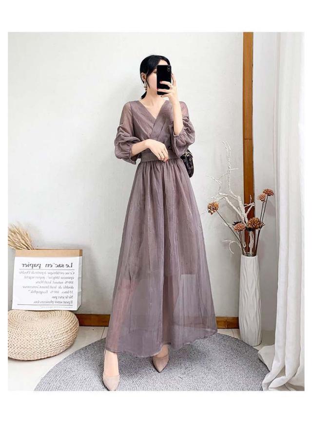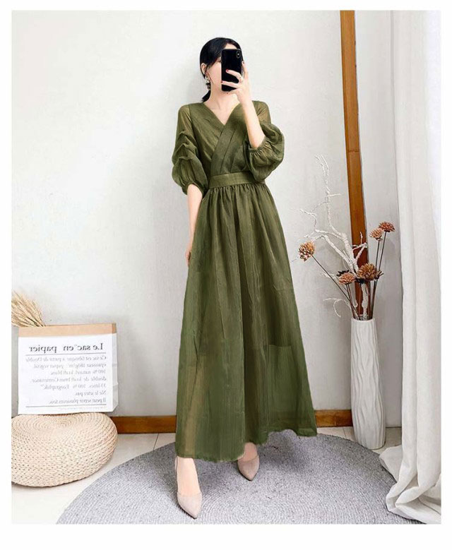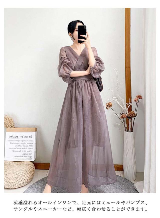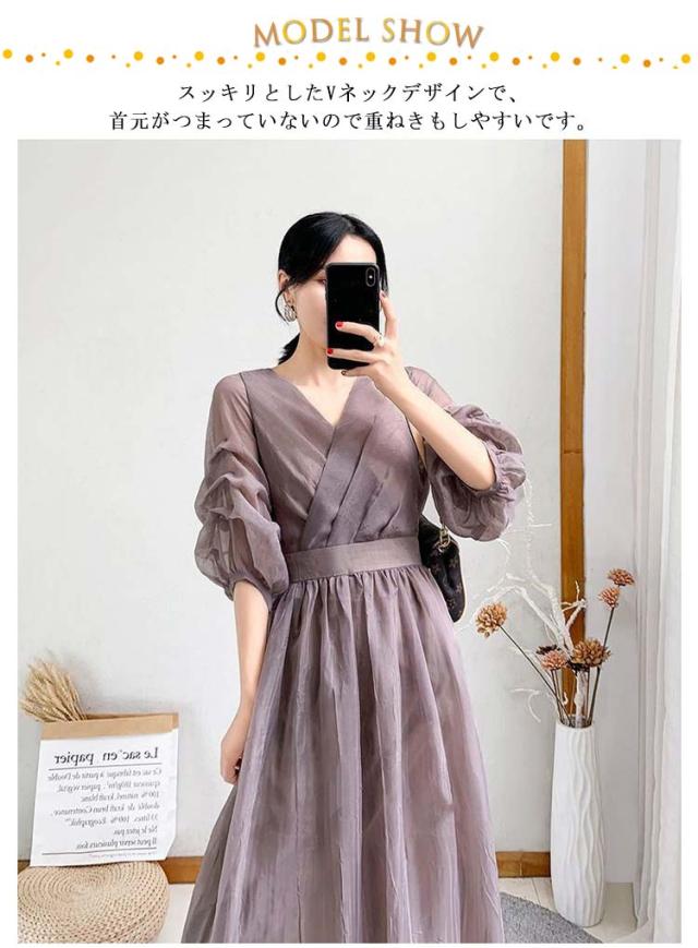 ワンピース ワンピ ロングワンピース フレアワンピース aラインワンピース ドレス 袖あり フレンチスリーブ 体型カバー パーティ 結婚式 婚活 フォーマル 大きいサイズ パープル ブラック グリーン
