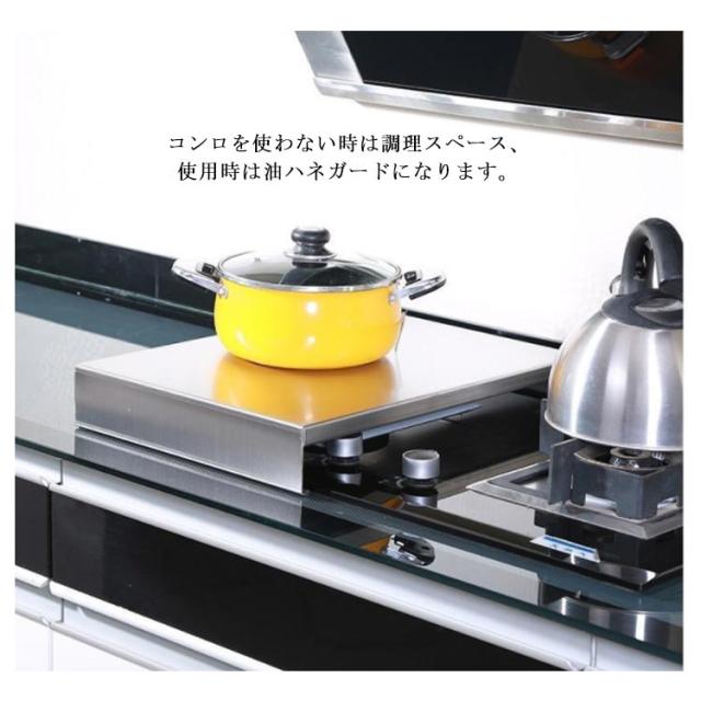| 置くだけでコンロの上が作業台に早変わり! 厚さ2.0mm、耐荷重:約100kg コンロを使わない時は調理スペース、使用時は油ハネガードになります。 サッとフタが出来るので不意の来客時も安心! 取り付けも簡単で、カバーは外して洗えます。 ガスコンロにもIHクッキングヒーターにもご使用いただけます。 お手入れ簡単、サビに強い304ステンレス製です。 | |