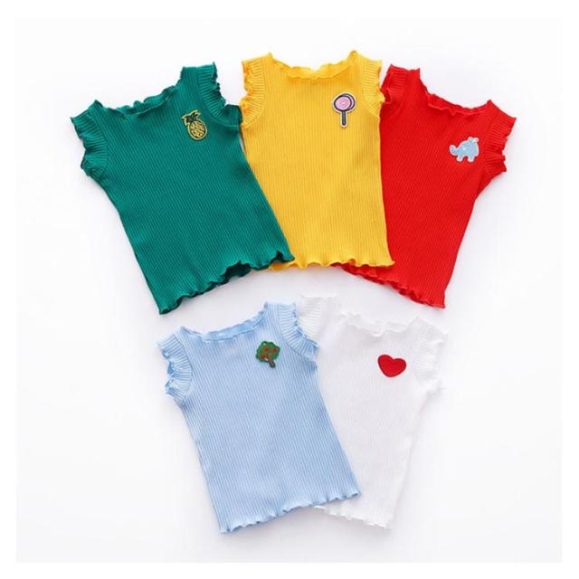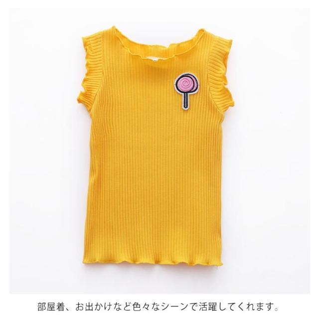 Tシャツ ベビー服 ノースリーブ 女の子 リブ クルーネック 夏物 袖なし トップス 子供服 赤ちゃん 幼児 ストレッチ 可愛い 普段着 部屋着