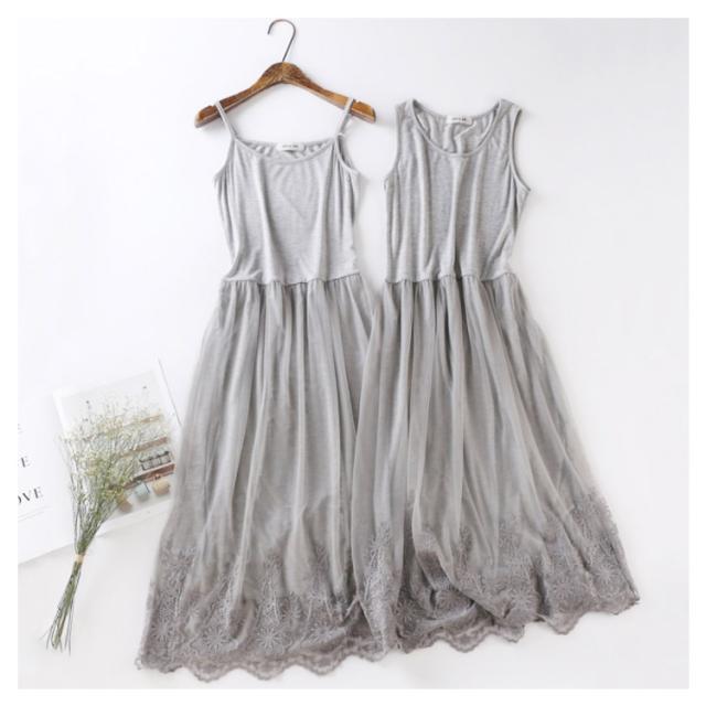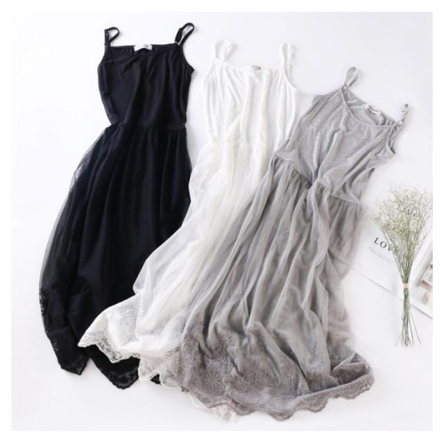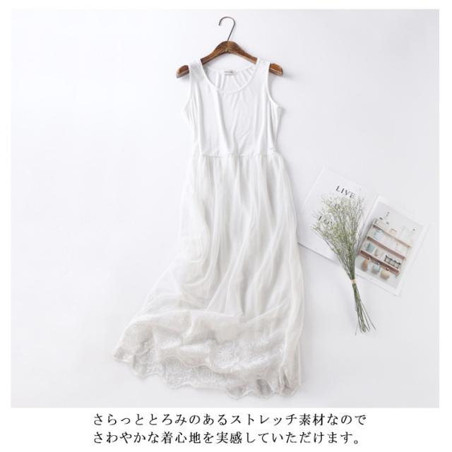 チュール レディース ロング丈 可愛い インナーワンピース スリップ タンクトップ ペチコート レース 透けない 吸汗速乾 ルームウェア キャミソール
