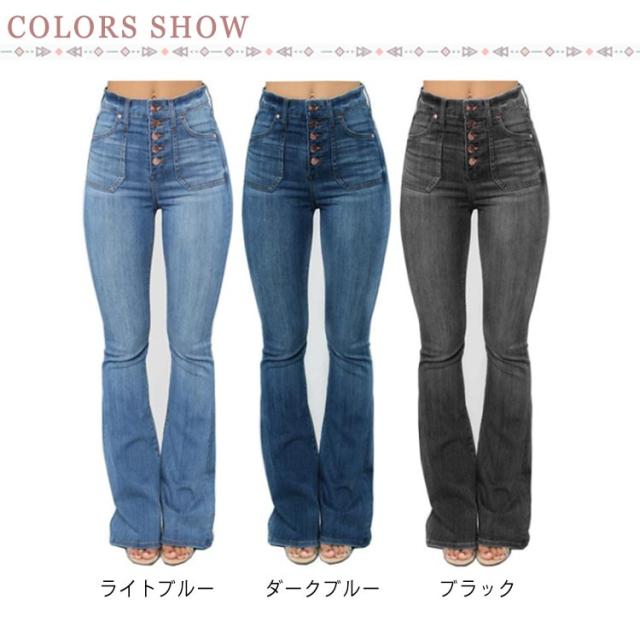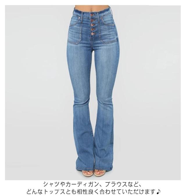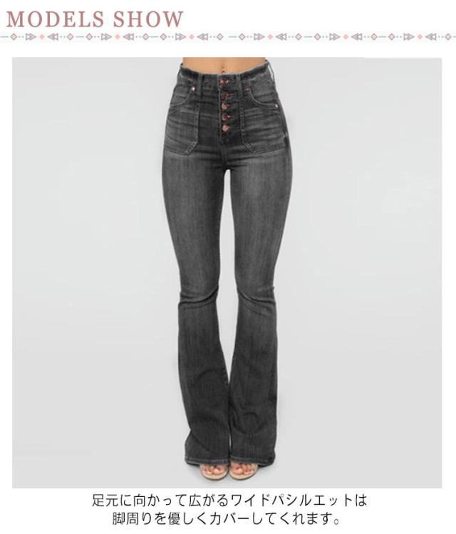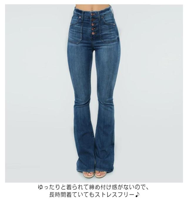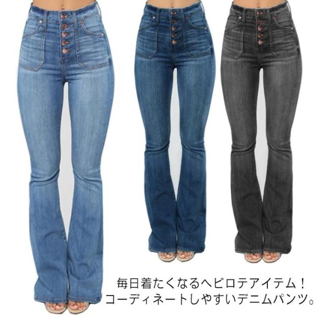デニムパンツ レディース 普段着 ハイウエスト ボトムス 春秋 ジーンズ カジュアル ロング丈 ジャージ 着痩せ お洒落 フレアパンツ
