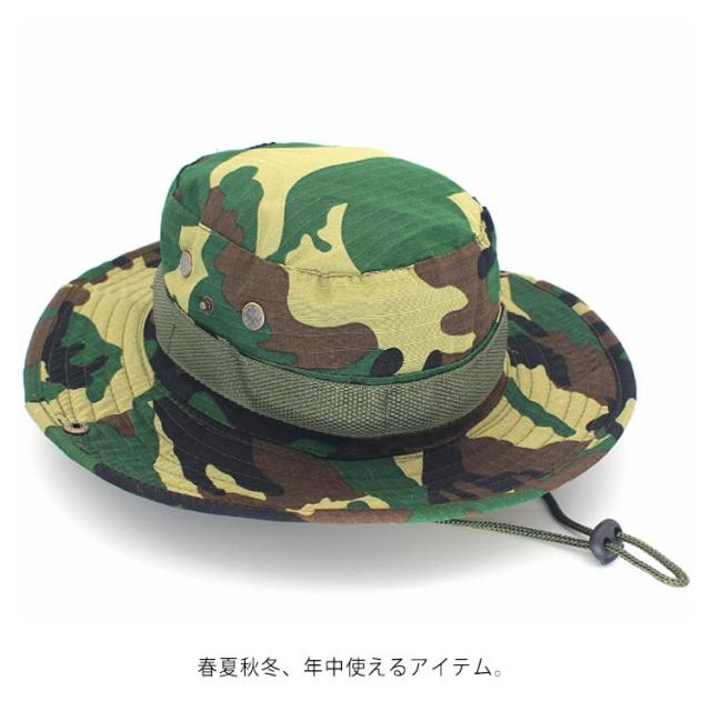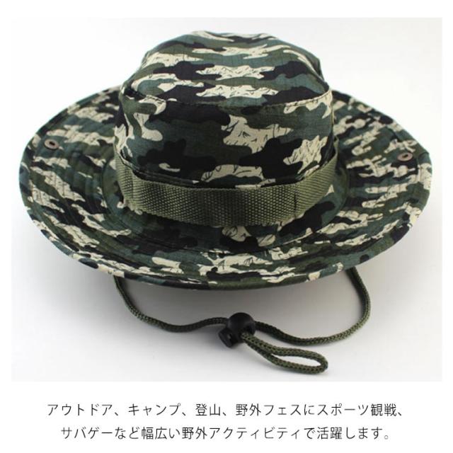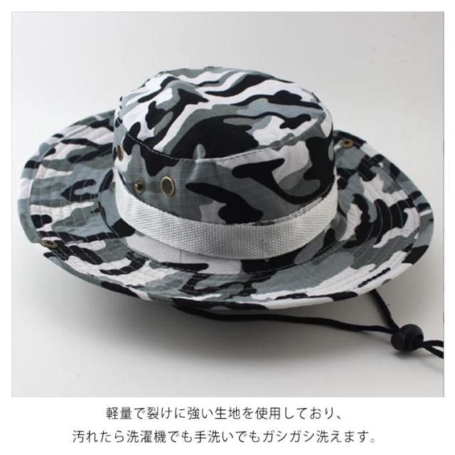 | 2wayアレンジを楽しめるサファリハット サイドのスナップボタンをつけてテンガロンハットに。 夏の熱中症対策、紫外線予防に。 春夏秋冬、年中使えるアイテム。 バリエーションは迷彩柄と無地をご用意。 軽量で裂けに強い生地を使用しており、汚れたら洗濯機でも手洗いでもガシガシ洗えます。 コンパクトに丸めてポケットに収納できたり、通気孔がついていたりと利便性も◎ アウトドア、キャンプ、登山、野外フェスにスポーツ観戦、サバゲーなど幅広い野外アクティビティで活躍します。 | |