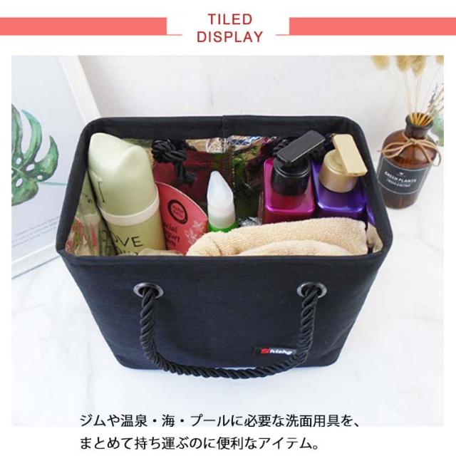 | お風呂グッズを入れてそのまま浴場へ!温泉や銭湯に似合うスパバッグ。 モノトーンのシンプル無地デザインで男性も女性も使いやすい。 ジムや温泉・海・プールに必要な洗面用具を、まとめて持ち運ぶのに便利なアイテム。 底にはメッシュ仕様で水が溜まることもなく、小物は落ちずに水がサッと流れてくれます。 スポーツタオルもスッキリ入る大容量で、プールに行ったり、ジムに行くのにも重宝します。 使わないときはペタンと畳むことができ、コンパクトに。軽量でかさばらないから持ち運びにも困りません。 | |