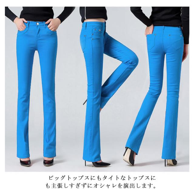 全10色!カラーフレアパンツ スキニーパンツ レギンスパンツ パンツ レディース カラースキニーパンツ ストレッチ 美脚 スリム チノパン ラッパパンツ 細身 春 夏 秋 ジーンズ ホワイト ピンク デニム 大きいサイズ 黒 送料無料