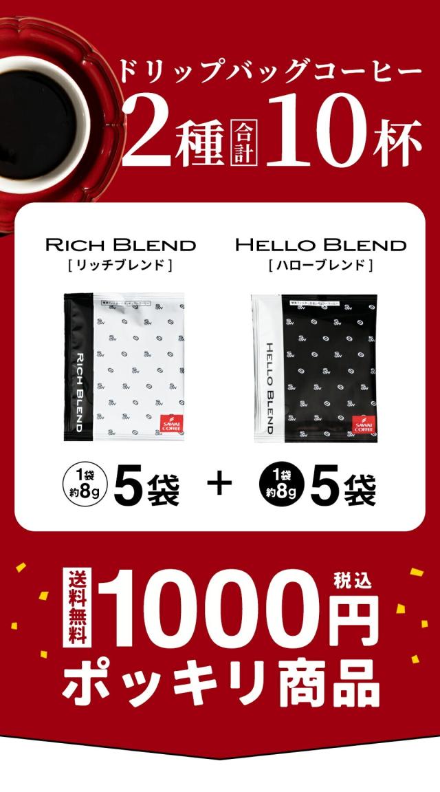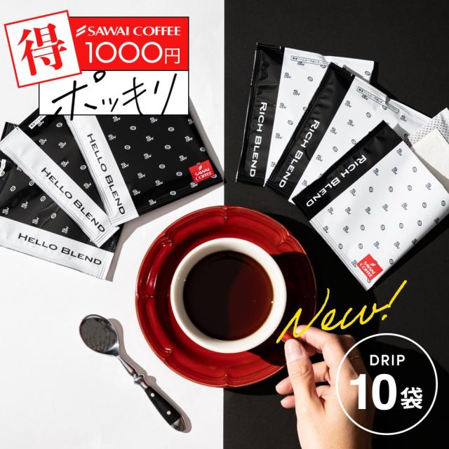 1000円ポッキリ 澤井珈琲 挽きたて リッチブレンド/ハローブレンド ドリップコーヒー10杯【追跡ゆうメール】 白と黒 コーヒー ドリップパック 飲み比べ 珈琲 おしゃれ かわいい 8g プチギフト ポイント消化