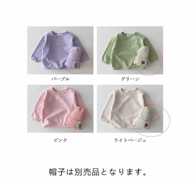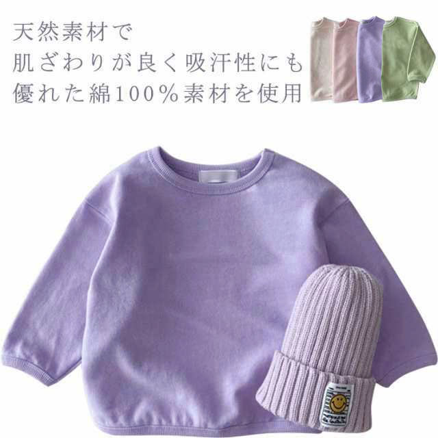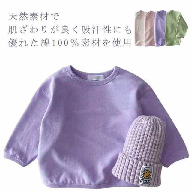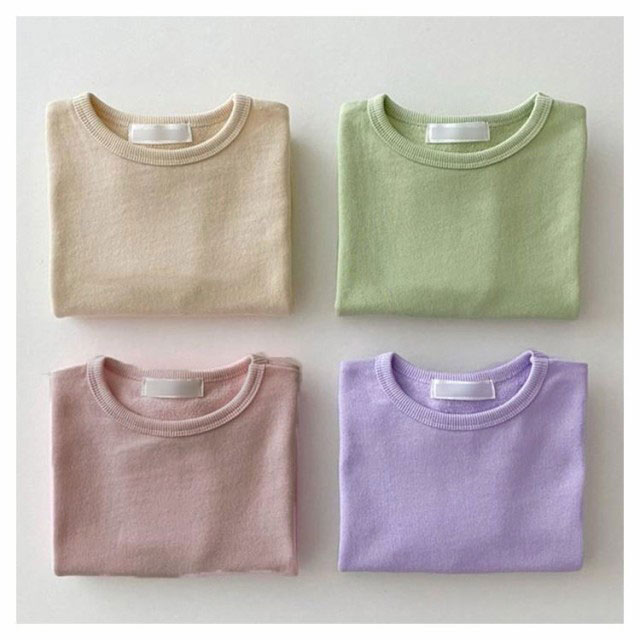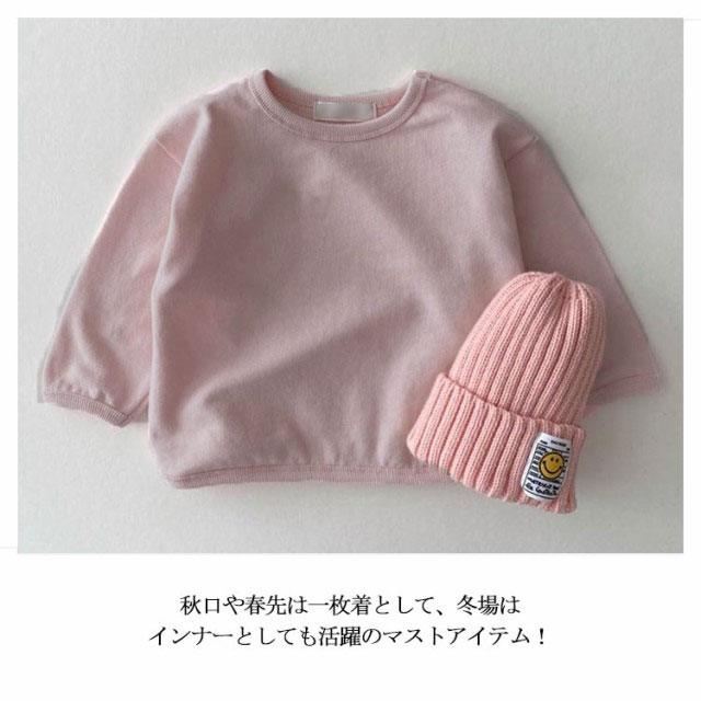 【送料無料】ベビー服 Tシャツ 長袖 100%綿 薄手 春 夏 秋 赤ちゃん Uネック ロンt スウェット 女の子 男の子 無地 綿 クルーネック カジュアル 保育園 80 90 100 110 120 130 かわいい 帽子無し