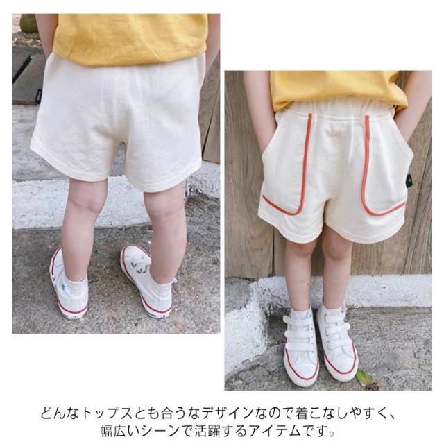 | 男の子も女の子も使える夏のハーフパンツ 配色ポッケトデザインが目を惹く男女兼用ショートパンツです。 お肌に優しいコットン素材を使用。敏感肌の子にも安心して使えます。 どんなトップスとも合うなデザインなので着こなしやすく、幅広いシーンで活躍するアイテムです。 | |