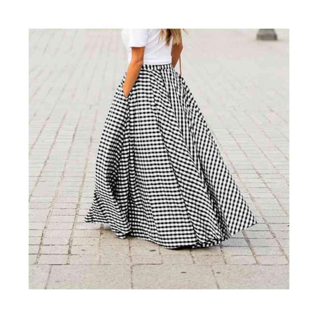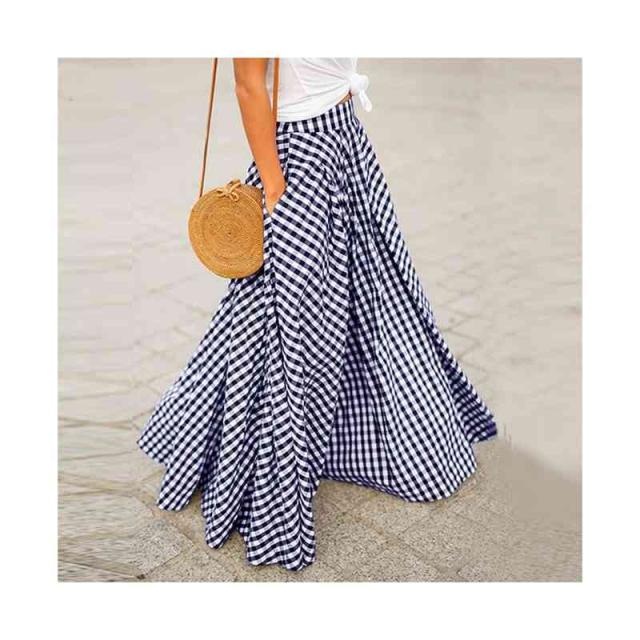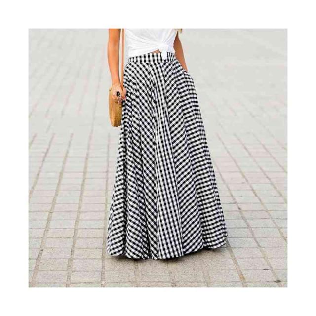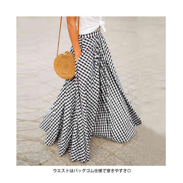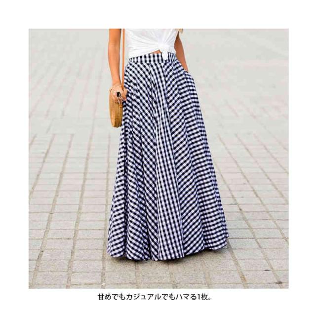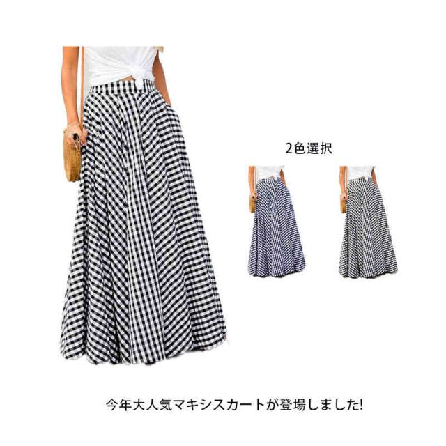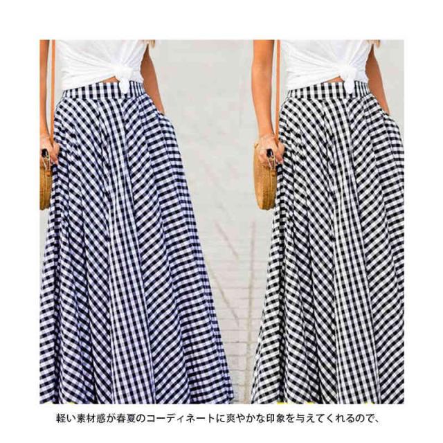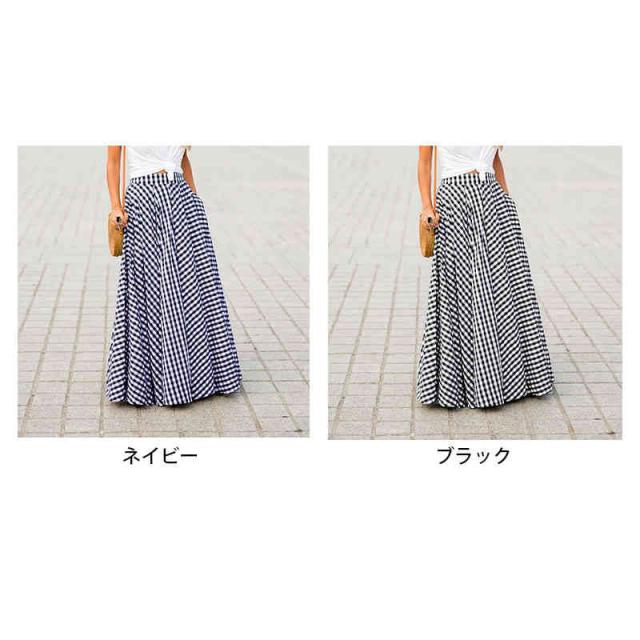 スカート レディース ロングスカート フレアロングスカート マキシ マキシスカート ギンガムチェック 柄 チェック おしゃれ Aライン リネン風 ネイビー 黒 フレアスカート ボトムス チェックスカート ロング丈 チェック柄 春 夏