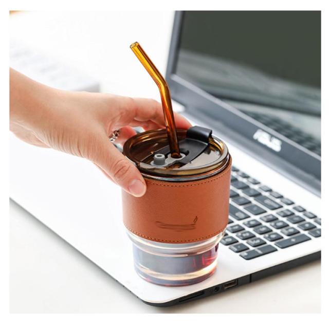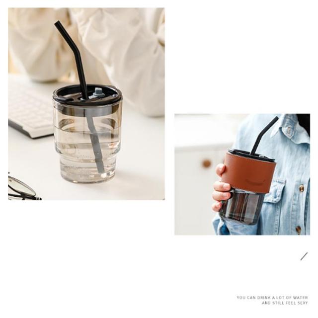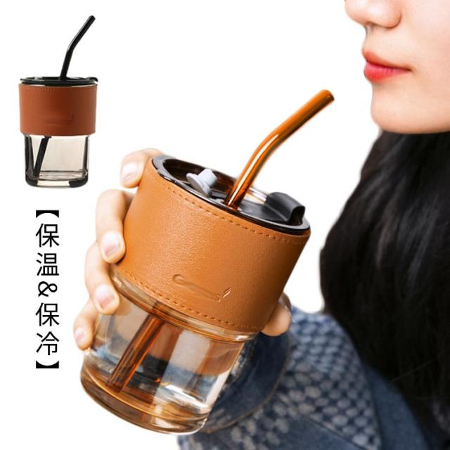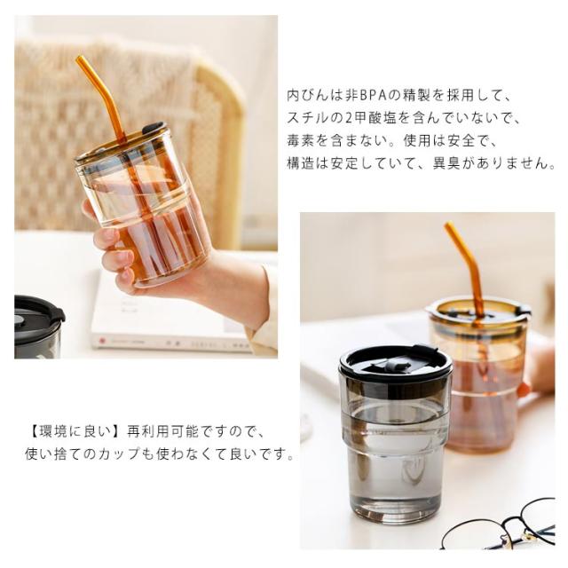 送料無料 コーヒーボトル タンブラー マグカップ 直飲み水筒 マイボトル 携帯用カップ ガラスボトル クリアボトル 2way 直飲み・ストロー 2in1 ストロー付 蓋付き おしゃれ かわいい 持ち運び こぼれない 通勤 持ちやすい コーヒー 450ml