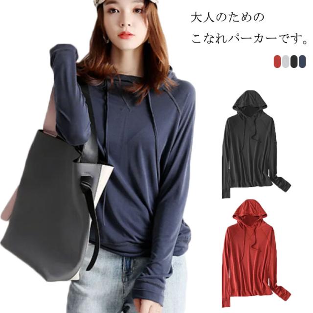 パーカー レディース フーディー トレーナー プルオーバーパーカー プルオーバー 薄手 綿 コットン スウェット フード フード付き トップス スウェット長袖 無地 シンプル 20代 30代 40代 春 秋