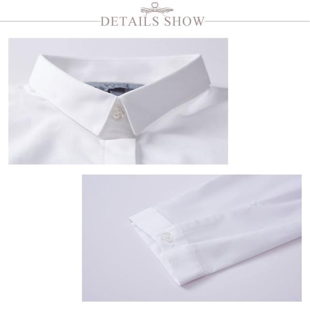 | シンプルなデザインは着回しもしやすく、スカートにもパンツスタイルにも合わせやすくなっています。 生地には綿40%、ポリエステル60%の綿ポリ混紡生地を採用。 綿による適度な通気性・吸湿性を持ち合わせつつ。ポリエステルの丈夫さ・しわになりにくさを活かした扱いやすい生地になっております。 就職活動などのシーンにはもちろん、学生の方の洗い替え用のシャツとしても便利な一枚に。 オフィスカジュアルスタイルに合わせていただくのにぴったりです。 | |