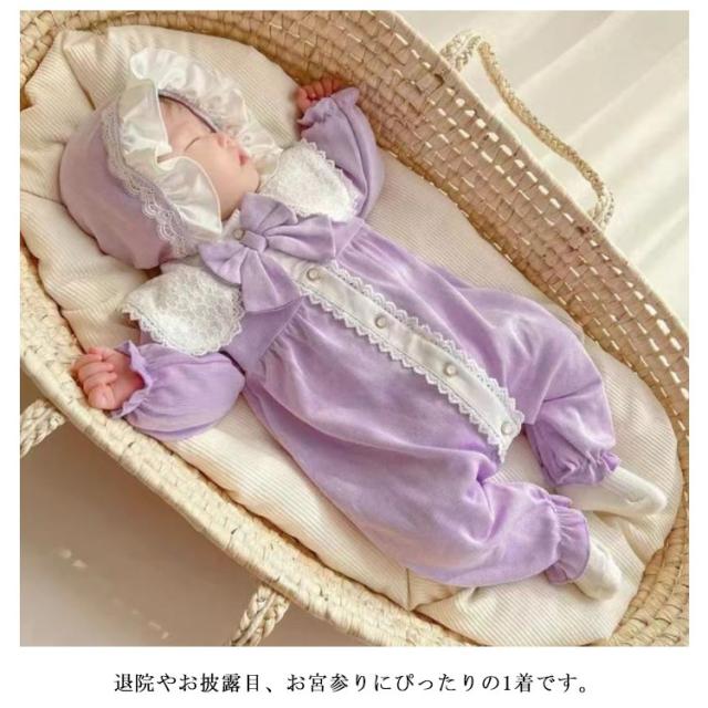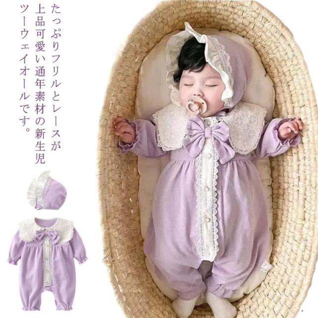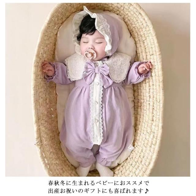 【帽子付き★2点セット】 長袖 カバーオール ロンパース 新生児ツーウェイオール フォーマルウエア ベビードレス 女の子 春秋冬 ベビー 結婚式 お祝い 七五三 ギフト 出産祝い お宮参り お食い初め