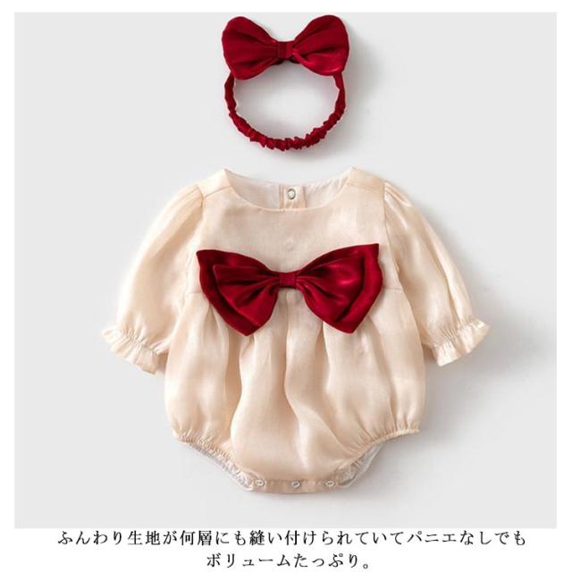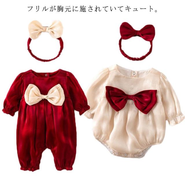 ヘアバンド付き セレモニードレス 女の子 お宮参り 退院 出産祝い ハーフバースデー お食い初め かわいい おしゃれ 上品 ロンパース セット