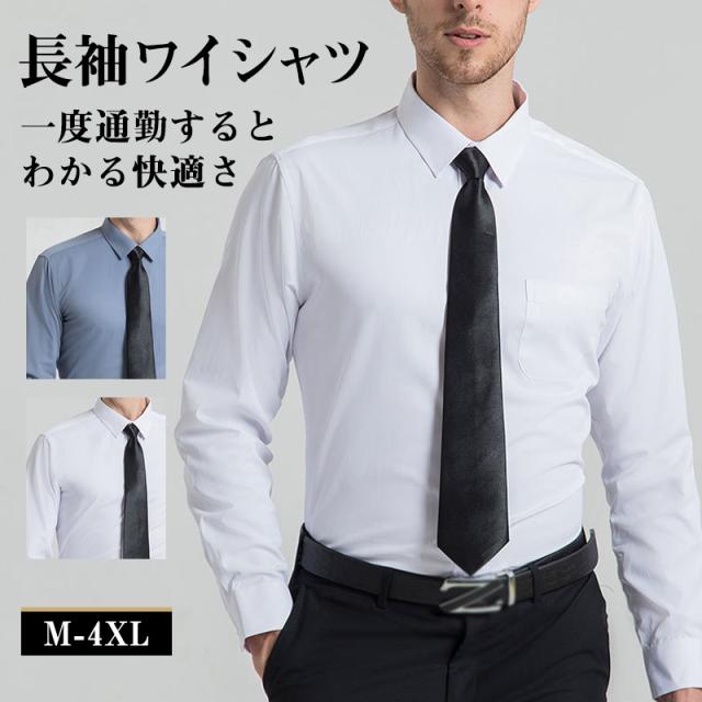 ワイシャツ メンズ 長袖 シャツ Yシャツ 無地 ホワイト 事務服 ビジネスシャツ オフィス 仕事 就活 おしゃれ 冠婚葬祭 大き