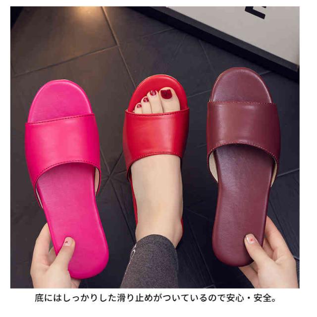 | 年中使えて足先が快適なレザー調スリッパ。 前あきタイプスリッパは、通気性がよく足ムレしにくいので長時間の着用も安心。 底にはしっかりした滑り止めがついているので安心・安全。 厚すぎず、薄すぎない、履いた瞬間からあなたの足に馴染みます。強度もあるので型崩れしにくく、直ぐにヘタってしまう心配もありません。 合成皮革素材、丈夫でお手入れ簡単! カラーも豊富でインテリアに合わせて選べるのも嬉しい♪サイズもレディース&メンズと揃います。 来客用のスリッパとして、会社応接室のスリッパとして大活躍中のレザー調スリッパ。 | |