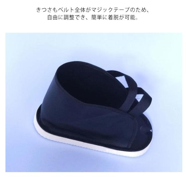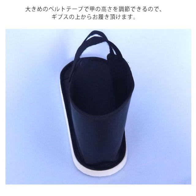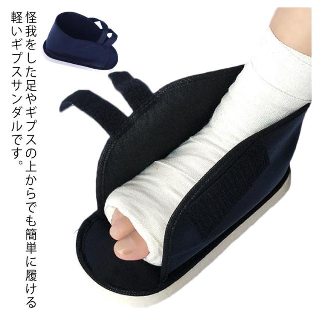 | 怪我をした足やギプスの上からでも簡単に履ける軽いギプスサンダルです。 歩行時のギプスの汚れを防ぐ、気温の高い日やじめじめした日にご使用いただいても、快適感が得られます。 大きめのベルトテープで甲の高さを調節できるので、ギプスの上からお履き頂けます。 きつさもベルト全体がマジックテープのため、自由に調整でき、簡単に着脱が可能。 左右のどちら用にも使用可能な左右兼用デザイン。 | |
