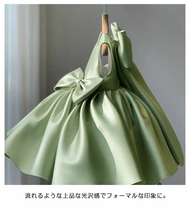 | ハリと光沢のある生地に、ふんわり大きなリボンがアクセント。 広がりのあるフレアスカートがボリューム感たっぷり。 ふんわり広がったシルエットが華やかさをプラス。 バッグリボンでキュートな後ろ姿に。 流れるような上品な光沢感でフォーマルな印象に。 上品でさりげないデザインなので、ちょっとしたお出かけにも。 | |