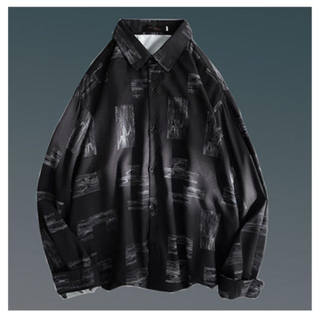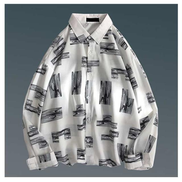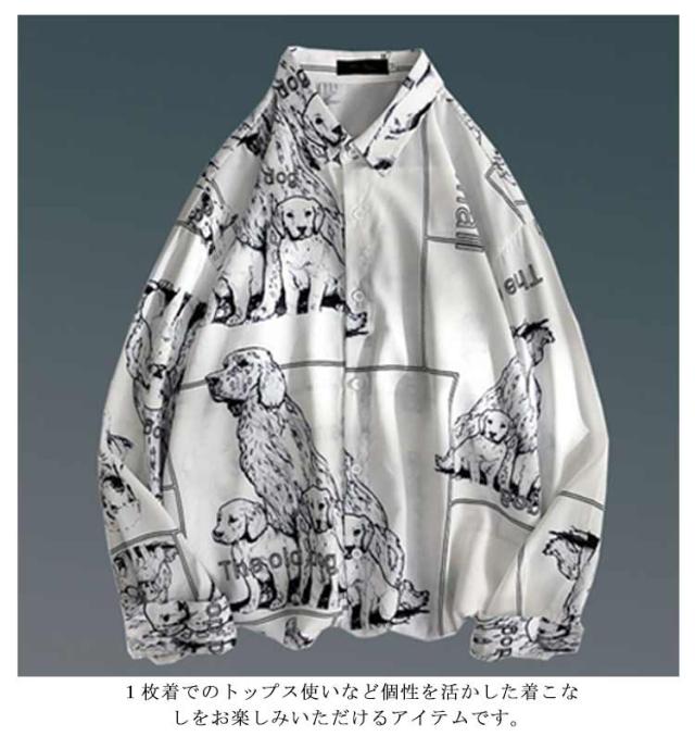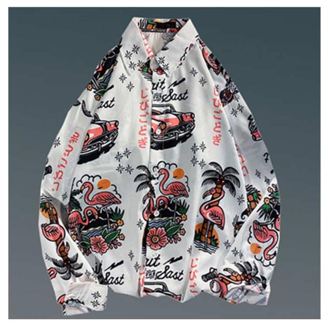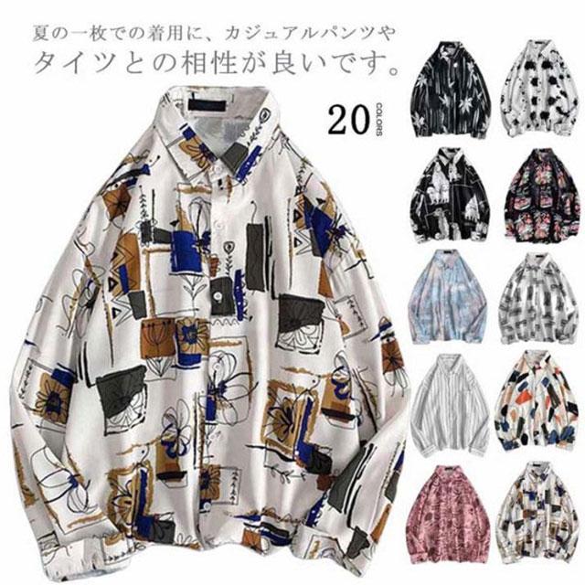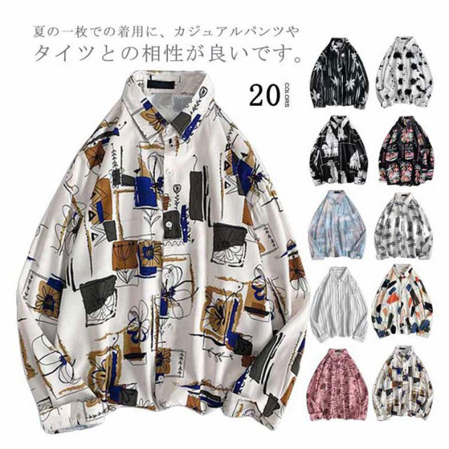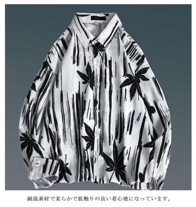 メンズ シャツ トップス 長袖 カジュアルシャツ 花柄シャツ 長袖シャツ ルーズシャツ ワイシャツ Yシャツ 前ボタン ブラック ホワイト レトロ 父の日 プレゼント 20代 30代 40代 50代