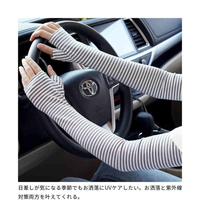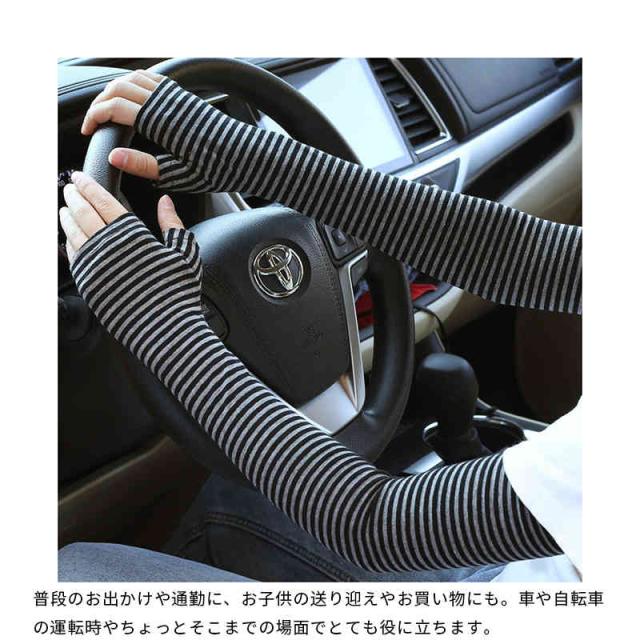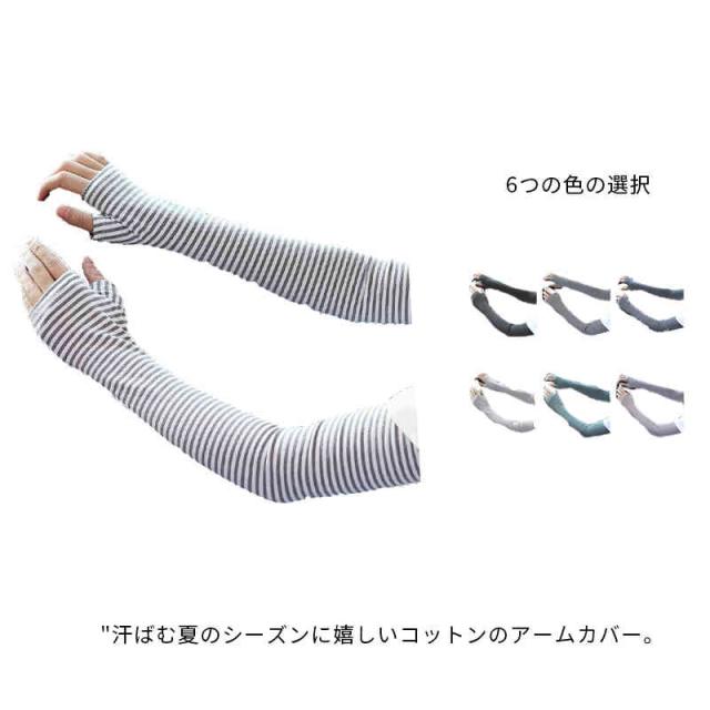 アームカバー UVカット ロング 腕カバー ボーダー レディース ドライブ メンズ 指なし 日焼け対策 ボーダー UV対策 冷房 日焼け止め 綿 男女兼用 紫外線対策 ユニセックス 野外 レジャー アウトドア 春夏