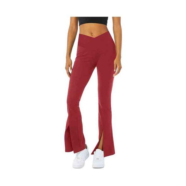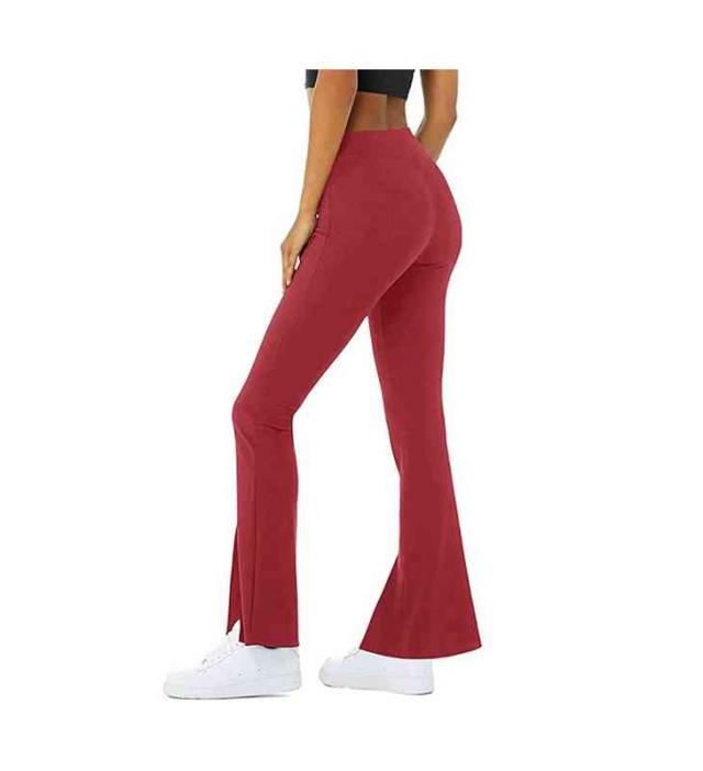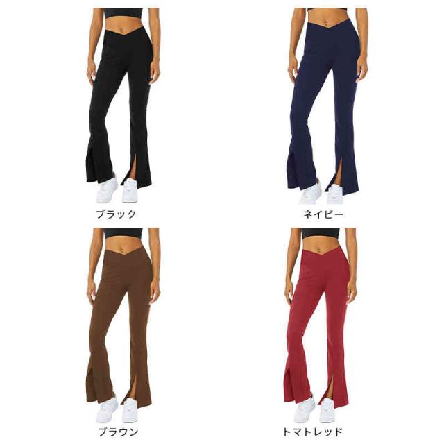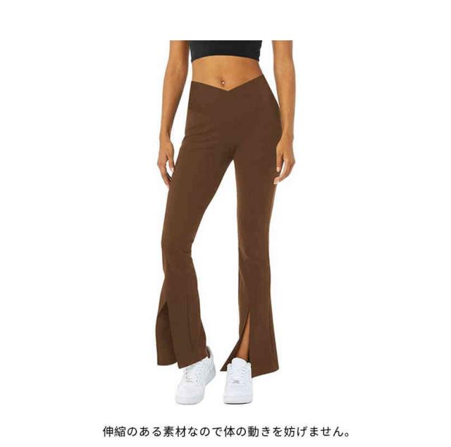 ヨガウェア フレアパンツ レディース ヨガパンツ 美脚パンツ ストレッチパンツ 美尻 細見え ダンス トレーニング 裾スリット 社交ダンス フィットネス