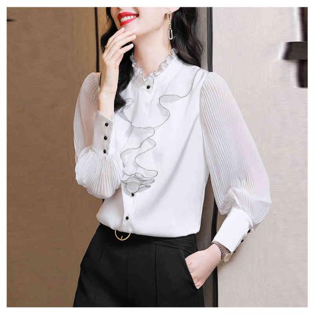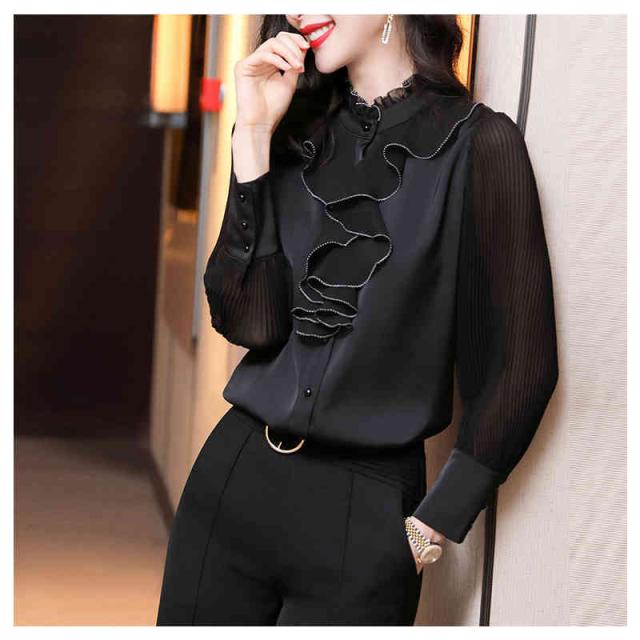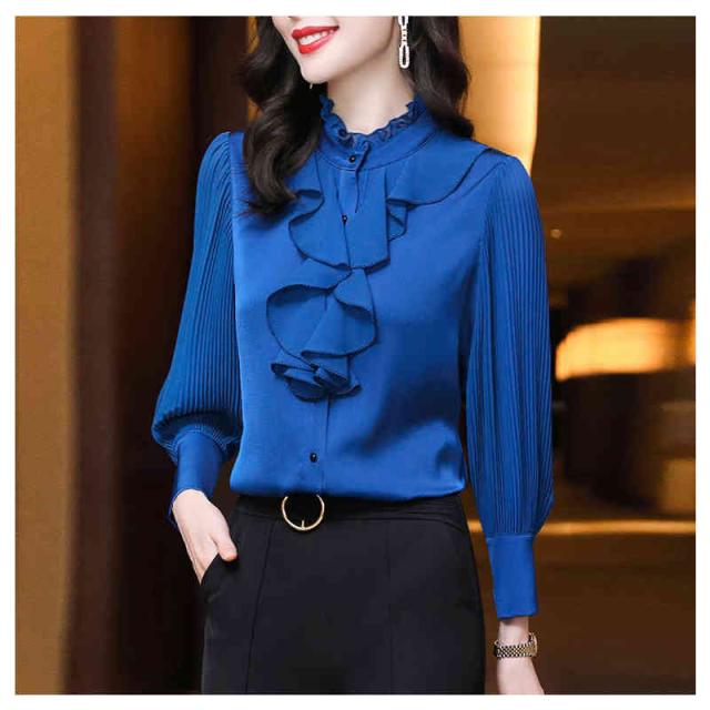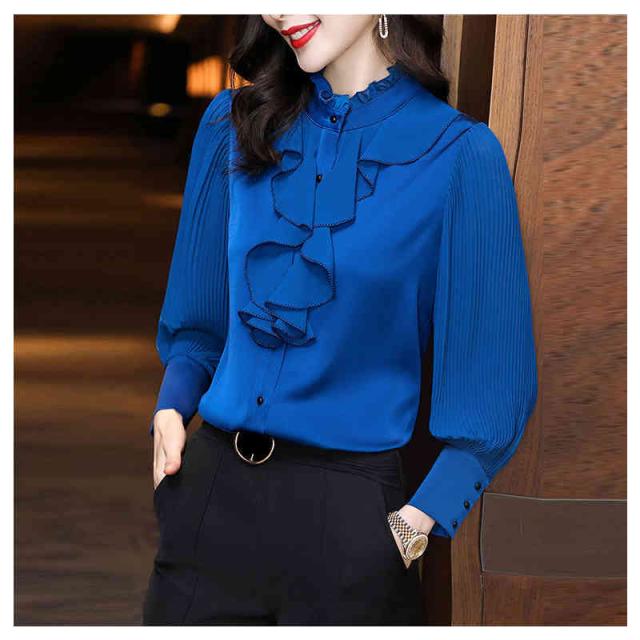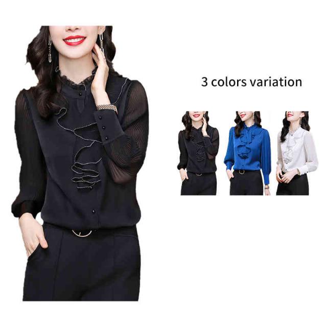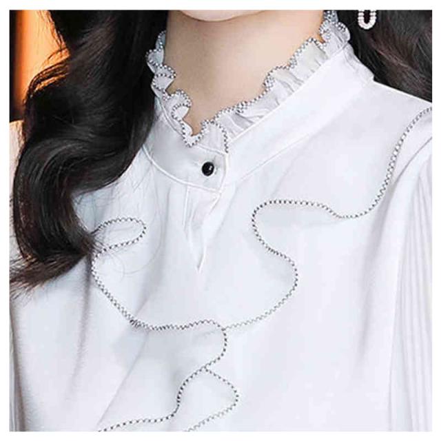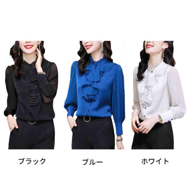 フリル ブラウス 春秋 レディース シフォンブラウス 長袖 フリル シフォン フォーマルブラウス おしゃれブラウス インナーブラウス トップス シャツブラウス 無地 シンプル カジュアル おしゃれ おでかけ 送料無料