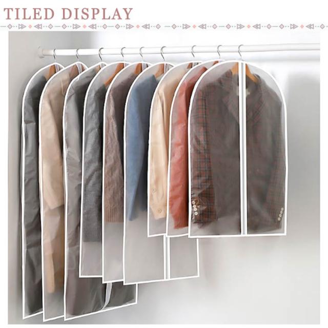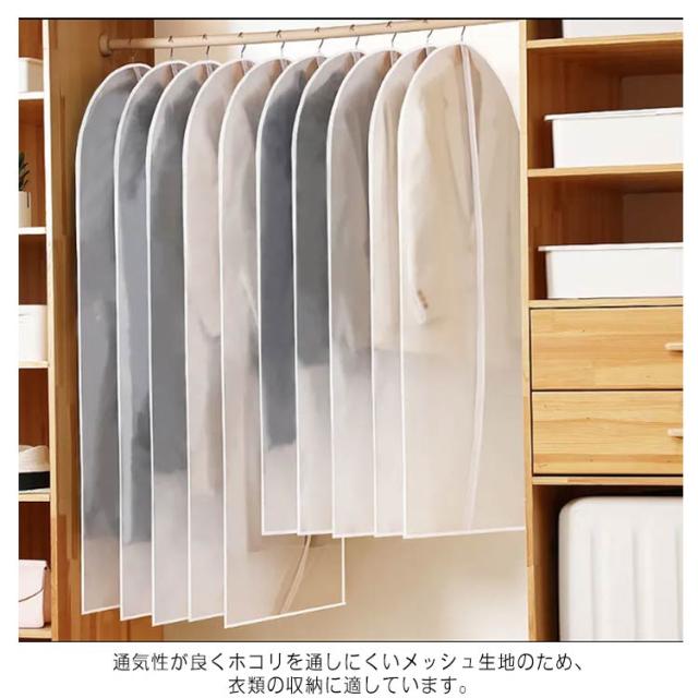 洋服カバー 5枚組 衣類カバー ファスナー付き 衣類収納袋 大容量 M L XL 全面カバー 防塵 衣替え タンス クローゼット 中身が見える 衣類長期保管 コート収納 ほこり除け 通気性良好 アストロ防水 半透明 送料無料