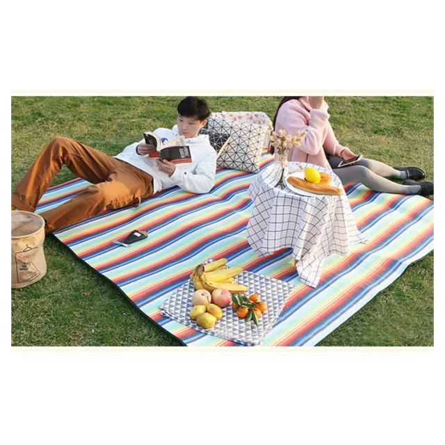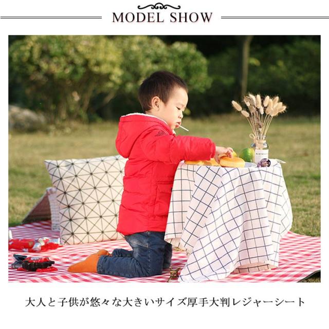 | 大人と子供が悠々な大きいサイズ厚手大判レジャーシート。 表面はアクリル生地で手触りが良い。 裏面はTPU生地防水性耐久性がバツグン。 柔らかいスポンジ4cm内蔵座り心地もより快適。 使わない時テープで固定するだけで簡単にコンパクトに。 | |