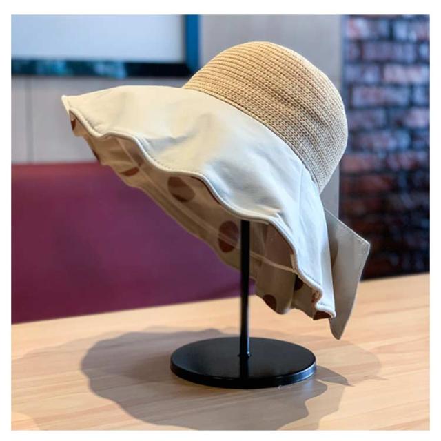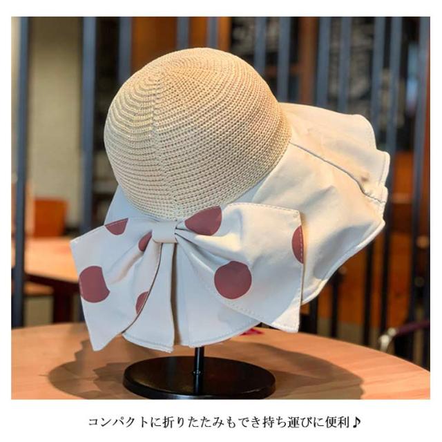 | リボン付きのおしゃれなつば広帽子 可愛くで、小顔効果抜群♪ つば広く、お顔を保護してくれます。 後に大きいなリボン付きデザインでおしゃれさアップ。 あご紐が有りますので風でも飛び出さない。 コンパクトに折りたたみもでき持ち運びに便利♪ | |
