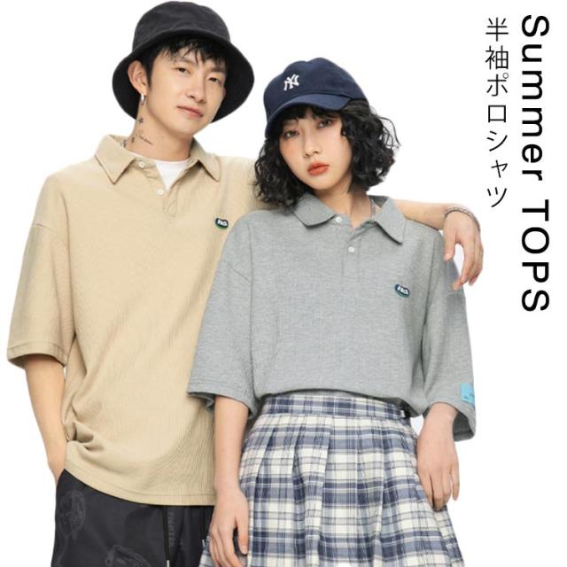 男女兼用 半袖 ポロシャツ ストリート系 半袖ポロ 英文字 ポロシャツ 半袖 メンズ レディース サマーTシャツ 半袖 Tシャツ ゆったり Tシャツ 半袖Tシャツ 体型カバー ストリート風 夏 トップス 爽やか 夏男 春 夏 夏服 送料無料