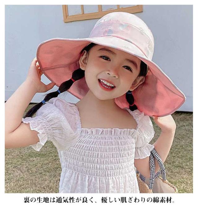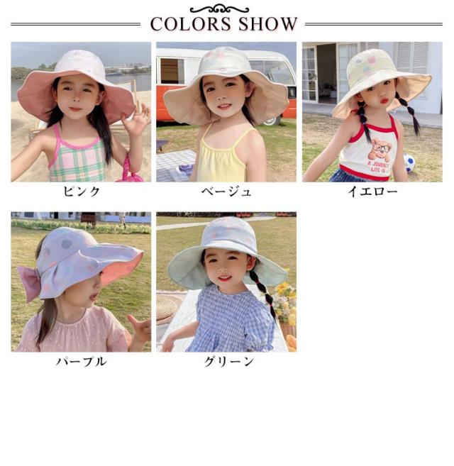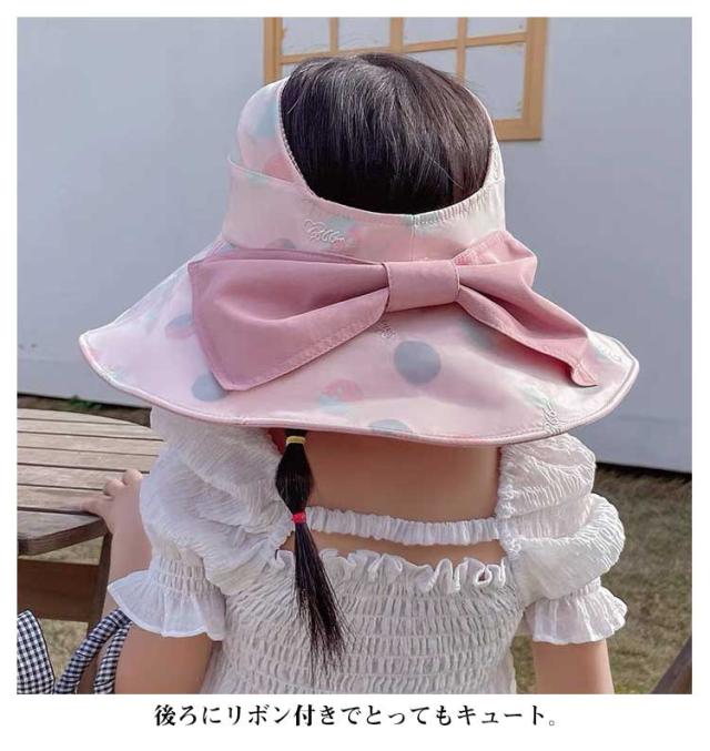 キッズ 帽子 女の子 リボン 日よけ 子供 UV ハット ビーチハット 紫外線カット サファリハット アウトドア 可愛い おしゃれ 3〜10歳 送料無料