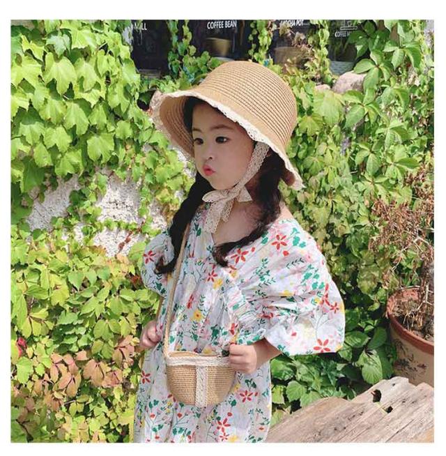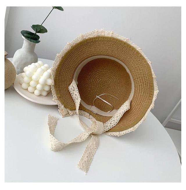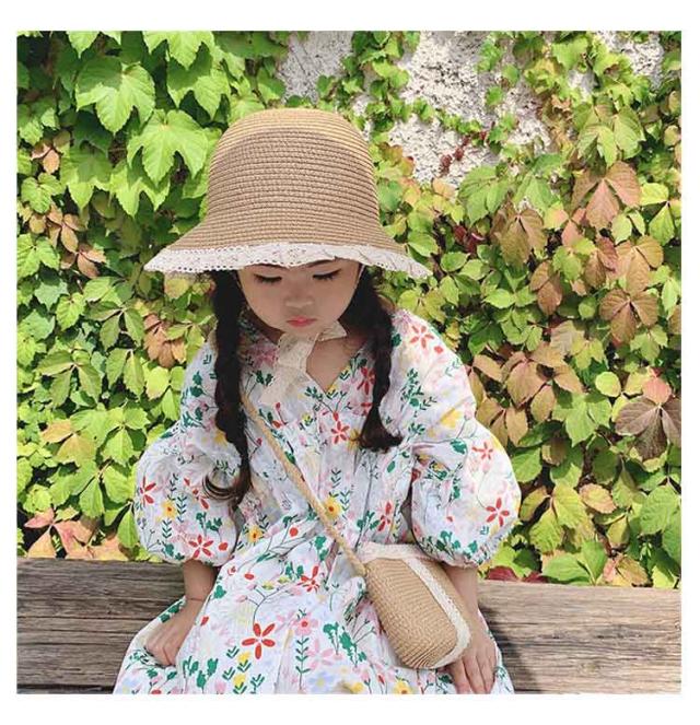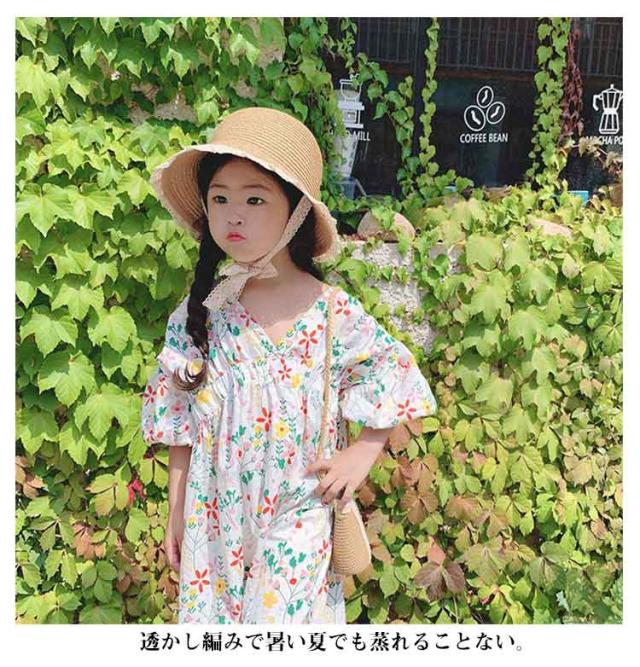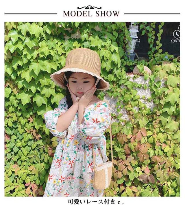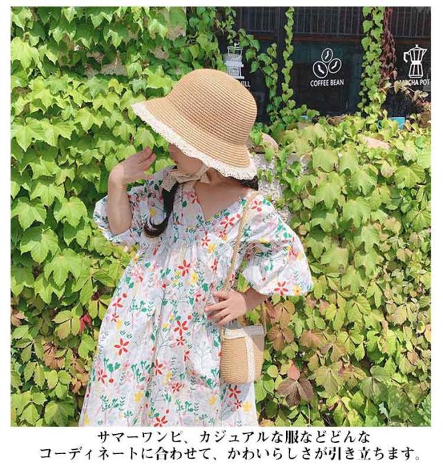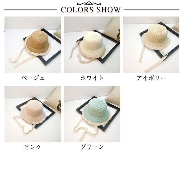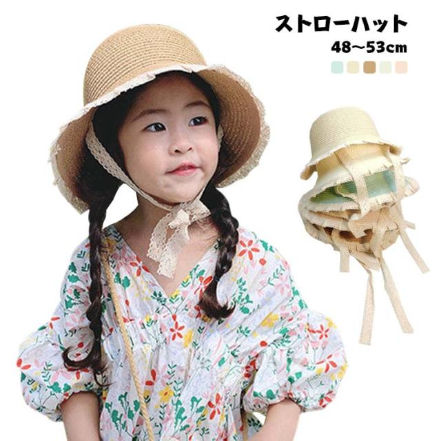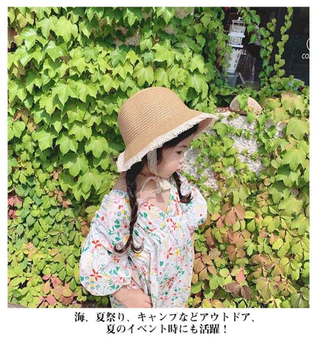 キッズ ストローハット 子供 帽子 レース UV対策 紫外線対策 UVカット 熱中症対策 日よけ あご紐 サイズ調整 レジャー 旅行 春夏 親子