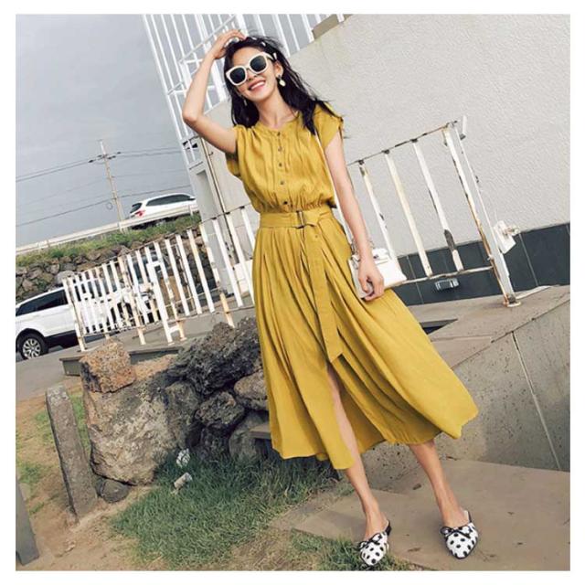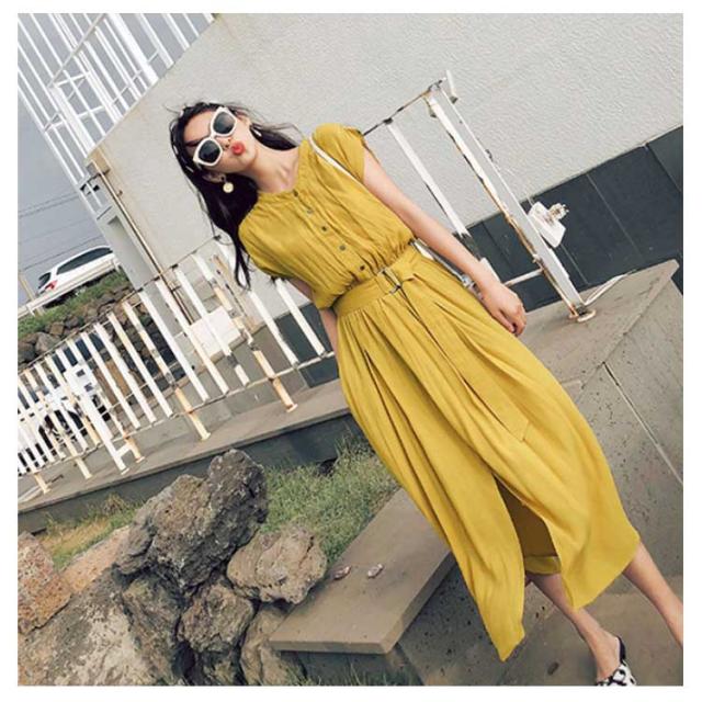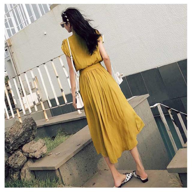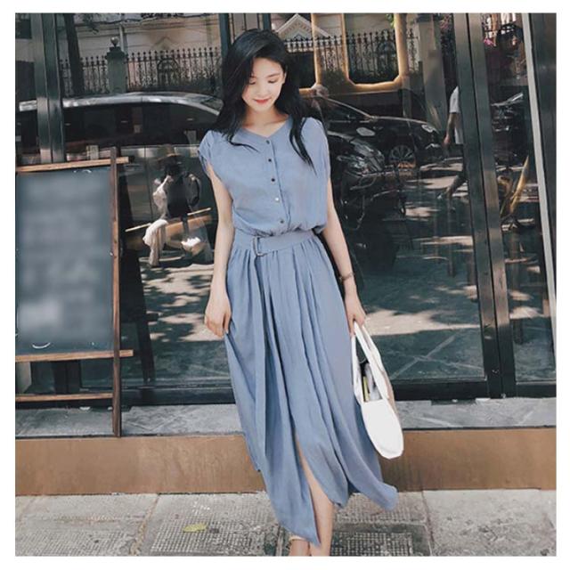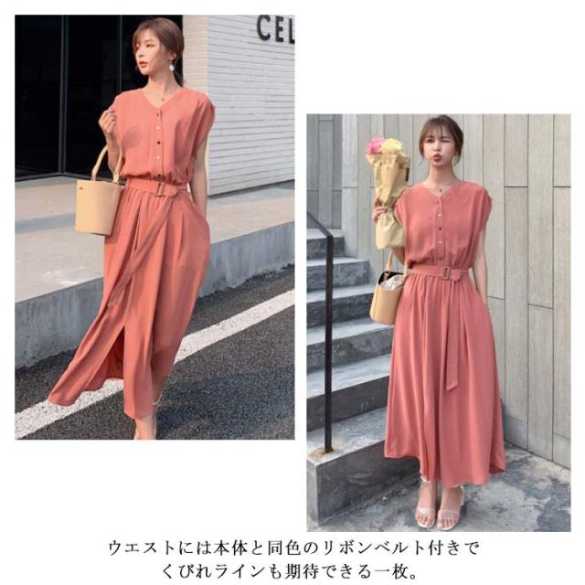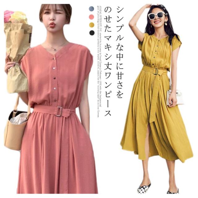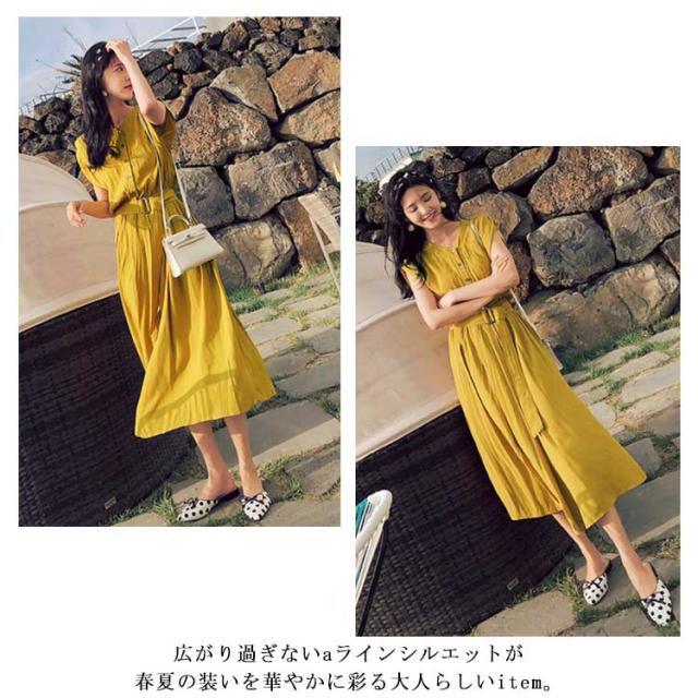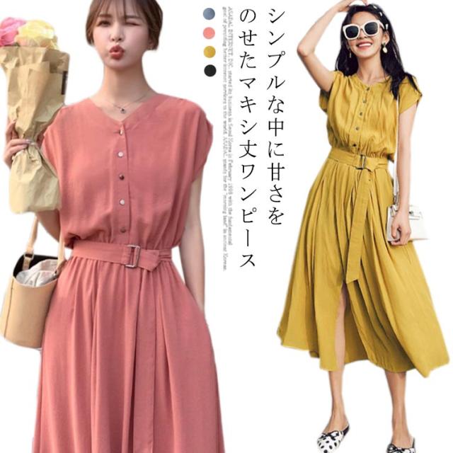 フレンチスリーブ マキシワンピース ロングワンピース マキシ丈ワンピース ワンピース ウエストリボンベルト付き 半袖ワンピース マキシ丈 マキシワンピ 大きサイズ aライン フレア 春夏 夏 おしゃれ 無地 シフォン 送料無料
