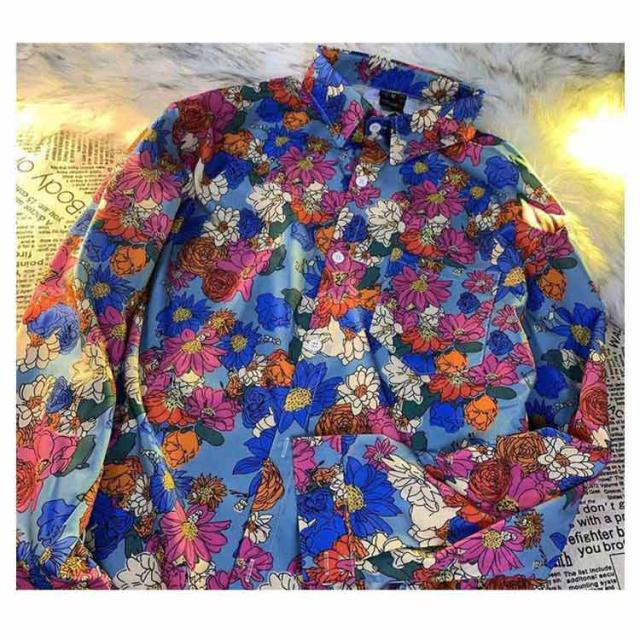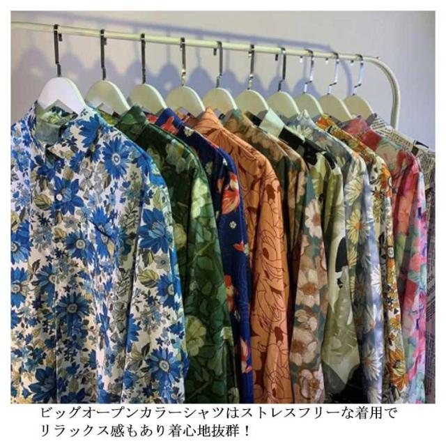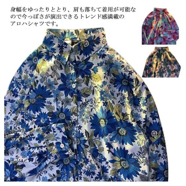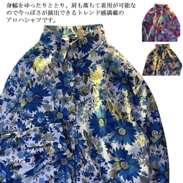 (全20種柄) カジュアルシャツ アロハシャツ 花柄 総柄 長袖 ゆったり メンズ フラワー柄 ボタニカル柄 菊 レディース トップス ビーチ 海辺 春 夏 秋 植物 リゾート ビッグシルエット オーバーサイズ