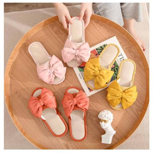 スリッパ リネンスリッパ 麻サンダル レディース リボン付き ルームシューズ 夏用 リネンサンダル 涼しい 蒸れない 室内履き ベランダ サンダル 歩きやすい 軽量 疲れにくい 快適 ナチュラル カジュアル 可愛い 洗える 来客用 自宅用 社内履き オフィス 家族 お揃い 送料無料