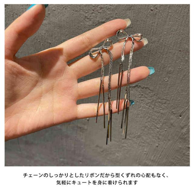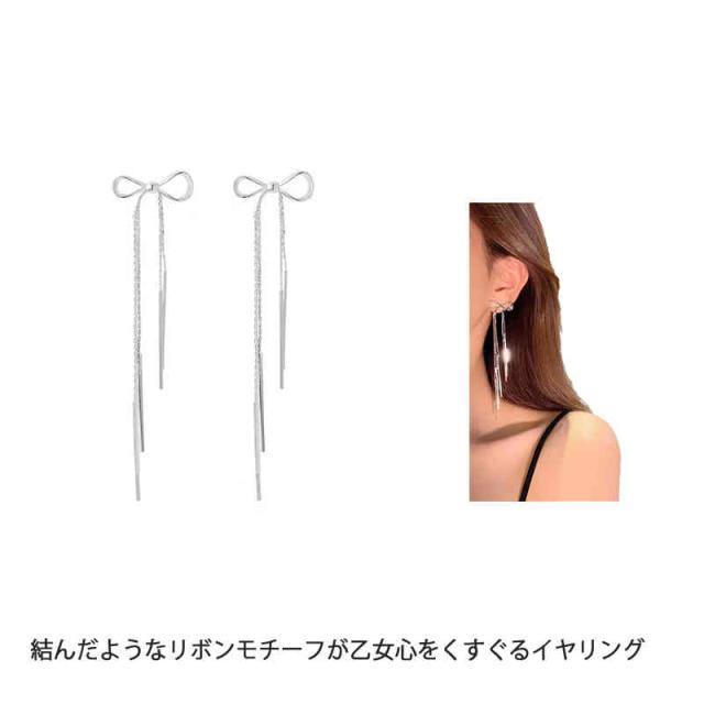 ピアス 揺れる りぼん タッセル シルバー キラキラ レディース シンプル かわいい おしゃれ トレンド S925 アクセサリー