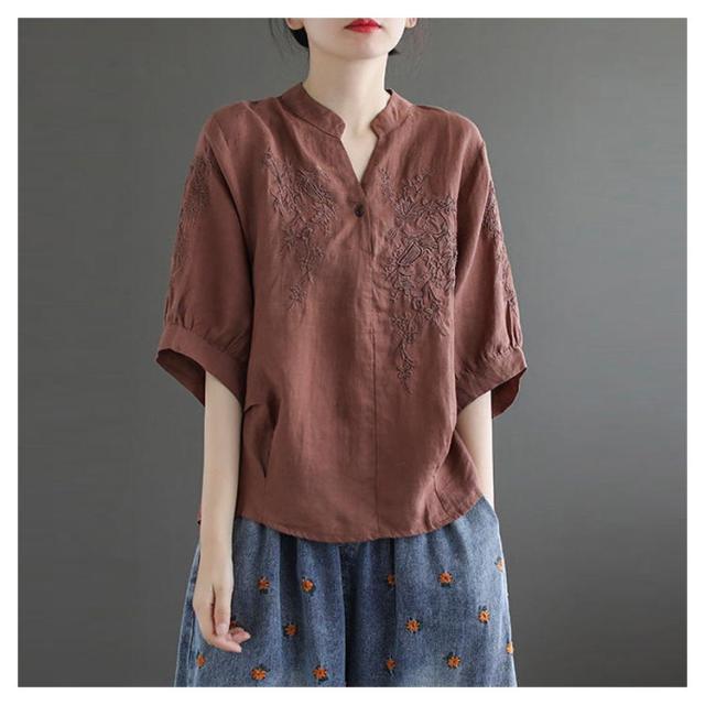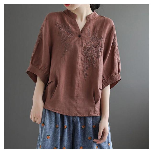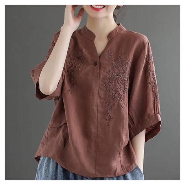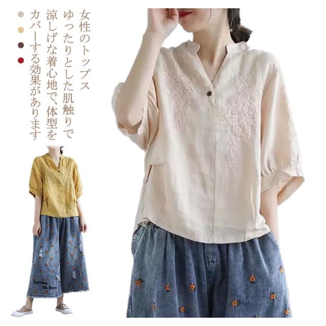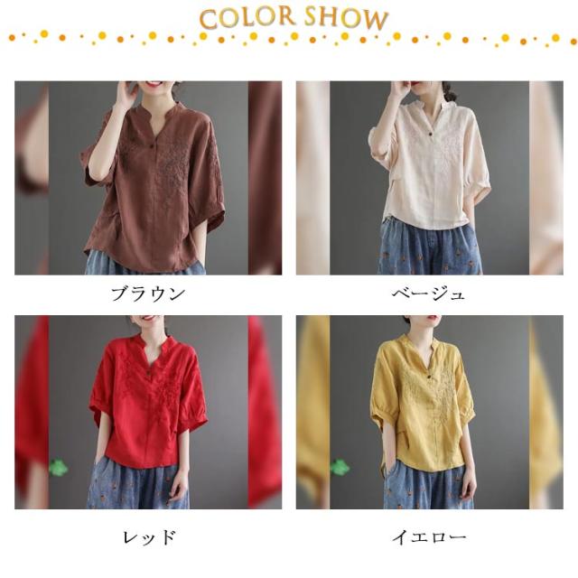 tシャツ レディース 半袖tシャツ ブラウス Tシャツ トップス カットソー 体型カバー 夏 ビッグシルエット Vネック 部屋着 大きいサイズ 無地 カジュアル ブラウン ベージュ レッド イエロー