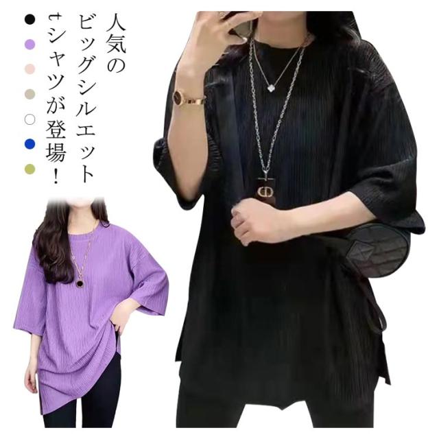 tシャツ レディース 半袖 Tシャツ トップス ビッグtシャツ ビッグT カットソー ロンT 体型カバー ビッグシルエット クルーネック 大きいサイズ 夏 無地 カジュアル ゆったり ブラック ピンク ホワイト