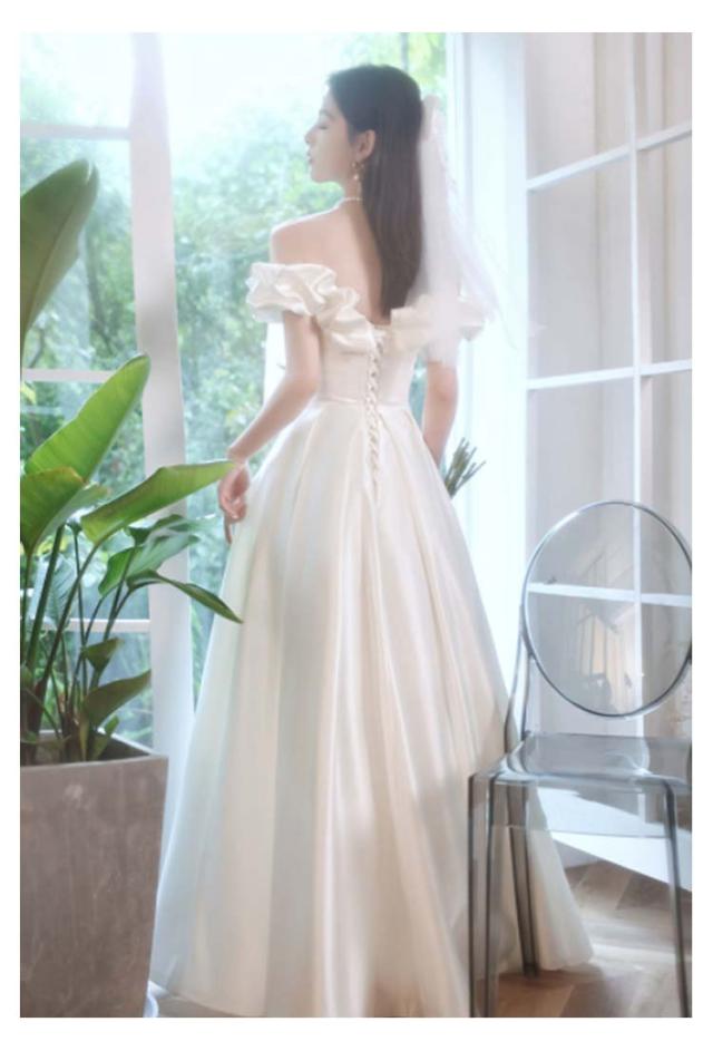 ロングドレス ウェディングドレス 二次会 パーティードレス ワンピース 上品 花嫁ドレス お呼ばれ 二次会ドレス ピアノ会 ドレス 袖 ハイウエスト 着痩せ 韓国 マキシ 二次会 披露宴 結婚式 ロング丈 オシャレ 大きいサイズ ホワイト ドレス